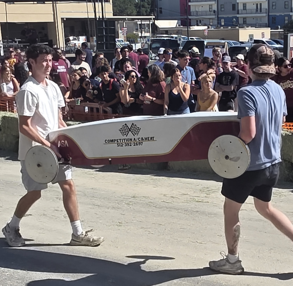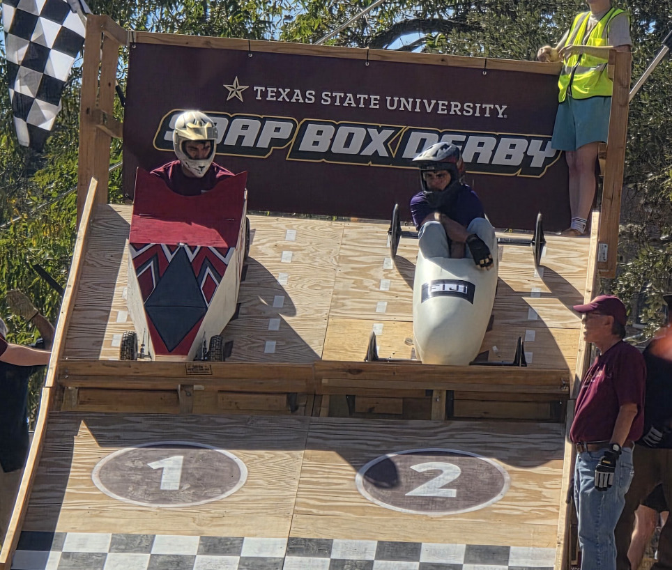Texas State fraternity Pi Kappa Alpha, in partnership with sorority Zeta Tau Alpha, won the soap box derby on Friday, which took place on Woods Street in front of the Ingram School of Engineering.