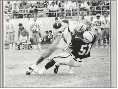 By 1982, Friday was recognized as one of the premier defenders in the nation. Twice named Second Team AP Little All-America (19821983) and a three-time unanimous First Team All-LSC selection (1981–83), he became the Lone Star Conference Defensive MVP winner in 1983. Head Coach John O’Hara described him as “one of the best in the country … a captain and one of our leaders on and off the field. I’d like to have an entire team of Cyril Friday’s.”