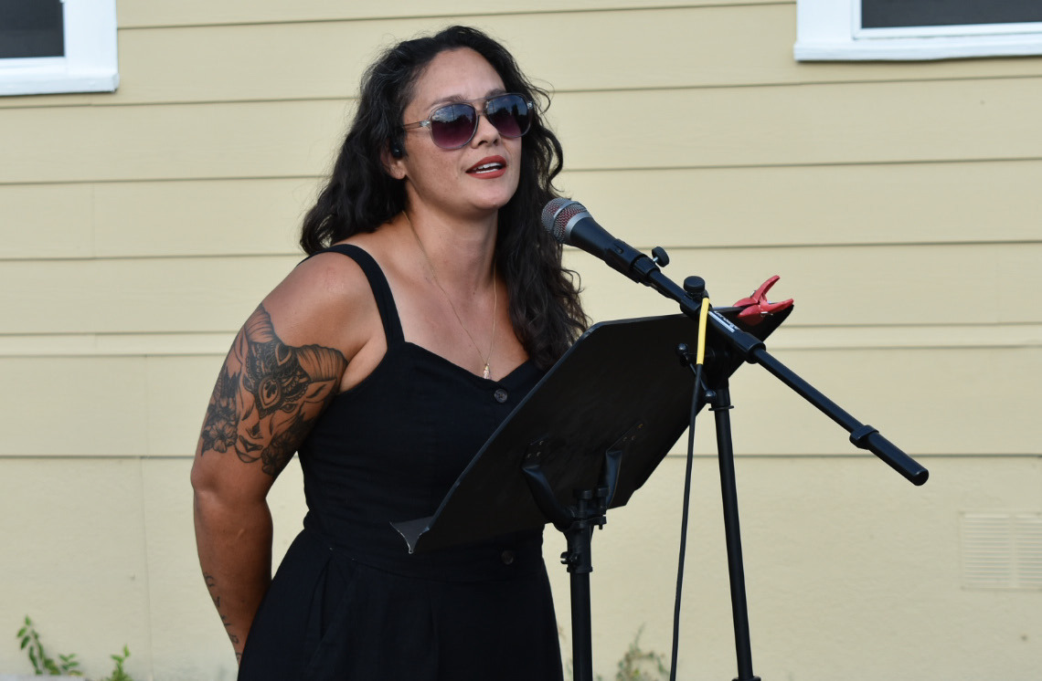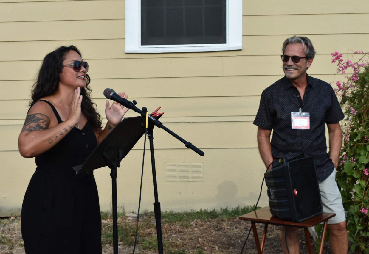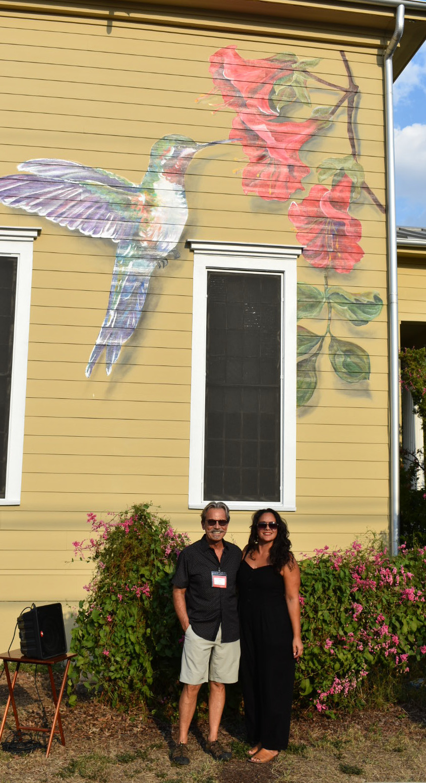 Community members gathered to celebrate the work of local muralist Michelle Wilson. The Price Center’s Executive Director Clay DeStefano kicked off the celebration by walking guests through the history of the city’s revived commitment to the arts. Thirteen years ago the San Marcos Arts Commission completed its first arts master plan which created the Mural Arts Committee. A few years later DeStefano joined the Price Center team and a focus on art prevailed at the center with their first gallery show premiering nine years ago.