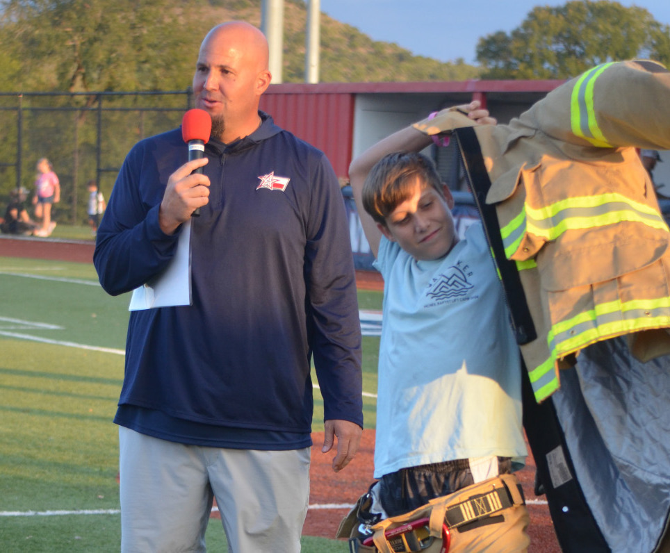 Jarred Robinson was the emcee of the event. There were multiple games played during the break between innings including a contest to see ho could put on a firefighters uniform the fastest.