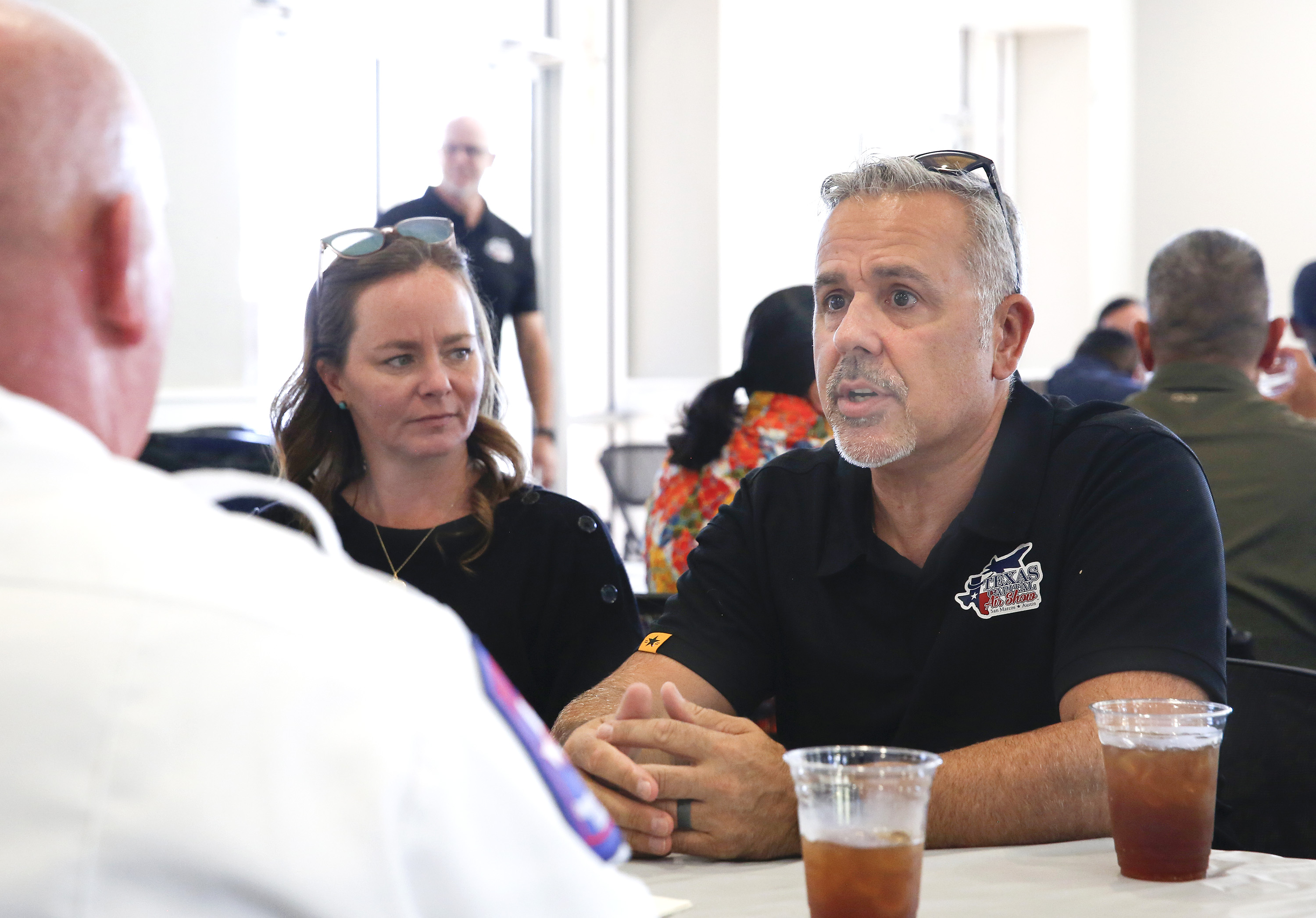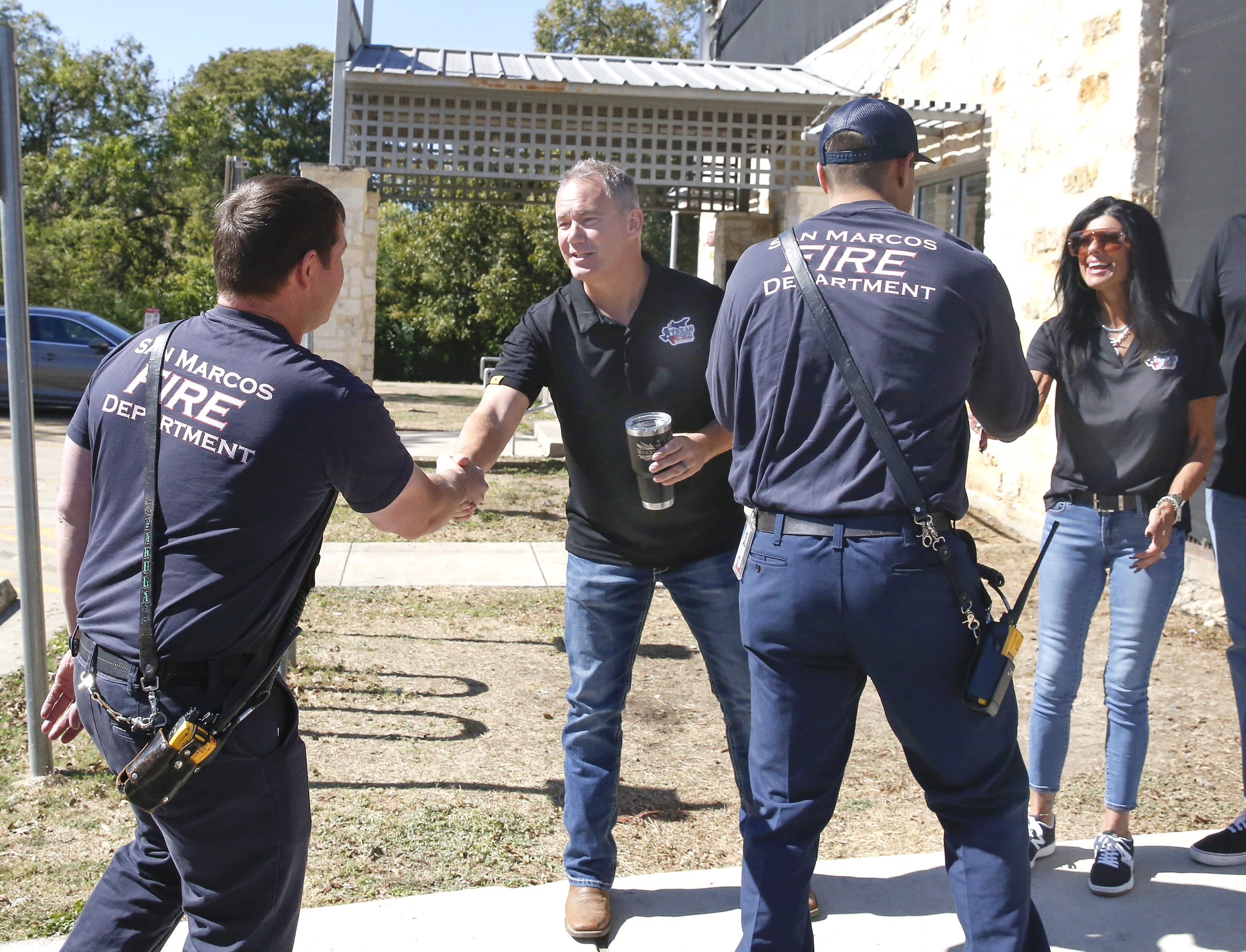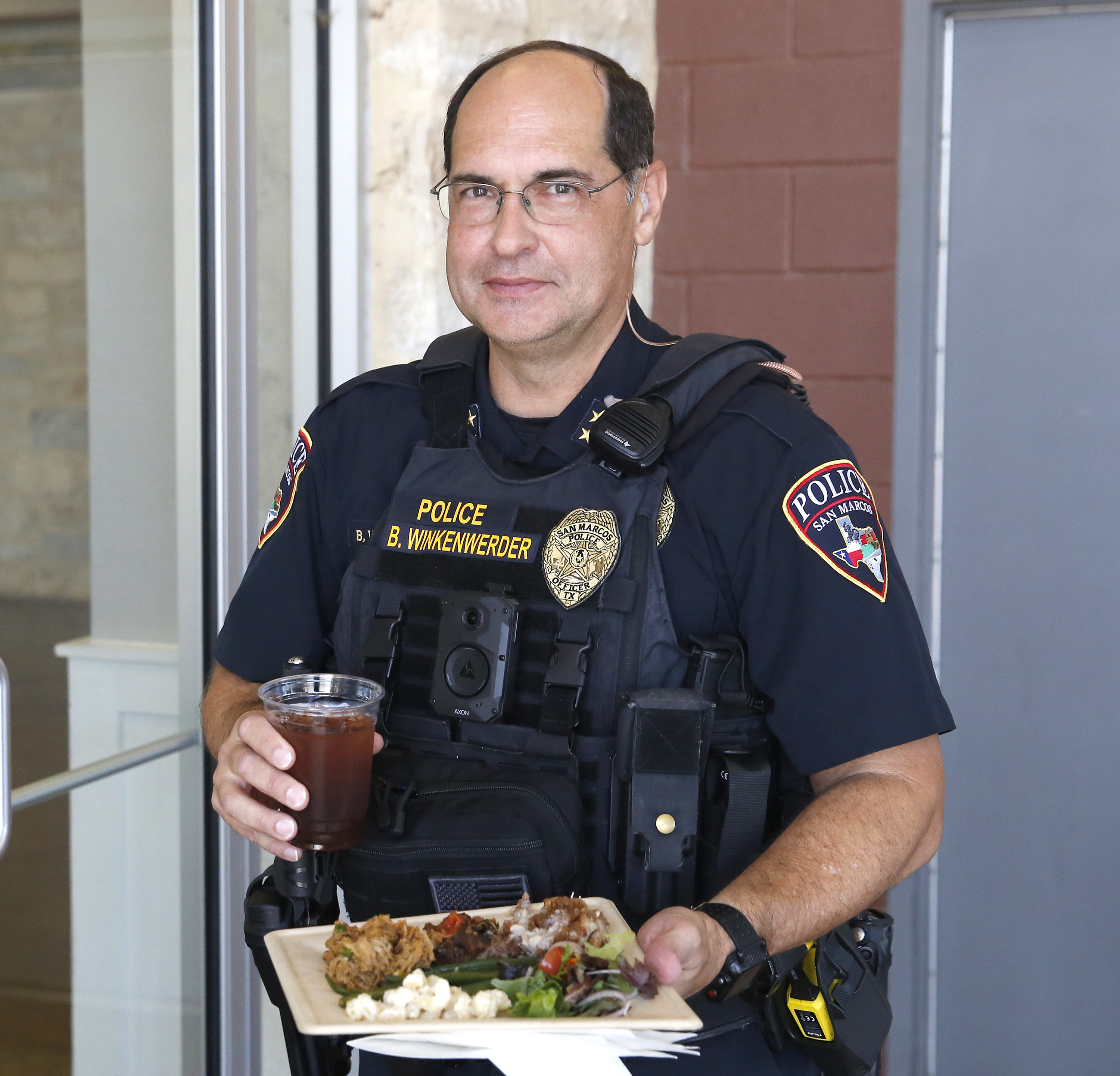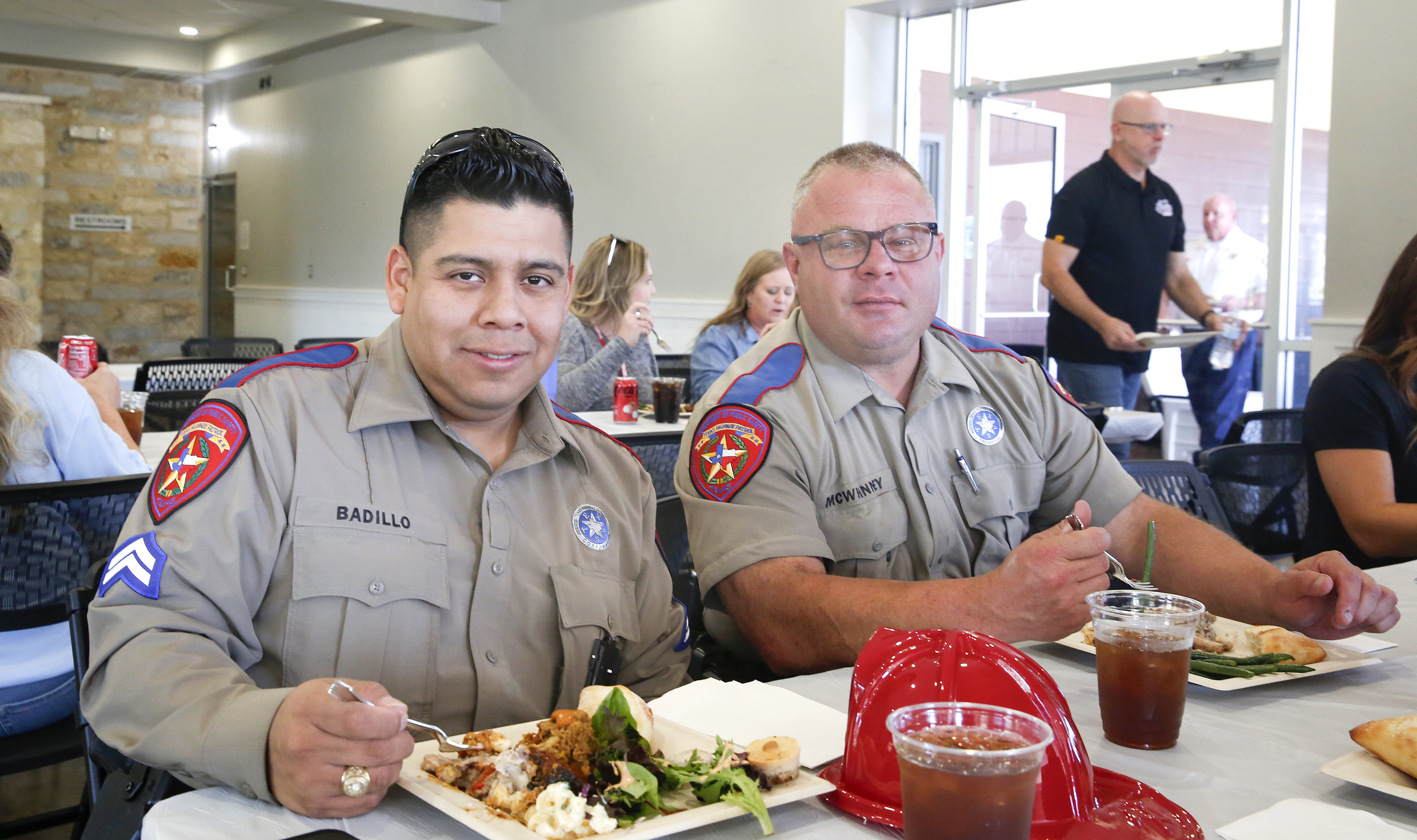 The Texas Capital Air Show staff welcomed San Marcos-area first responders to the Pauline Espinosa Community Hall on Tuesday for a catered feast originally planned for the VIP area of the air show. Scheduled for Nov. 1 and 2, the show was cancelled due to the Federal government shutdown, according to a TCAS press release.