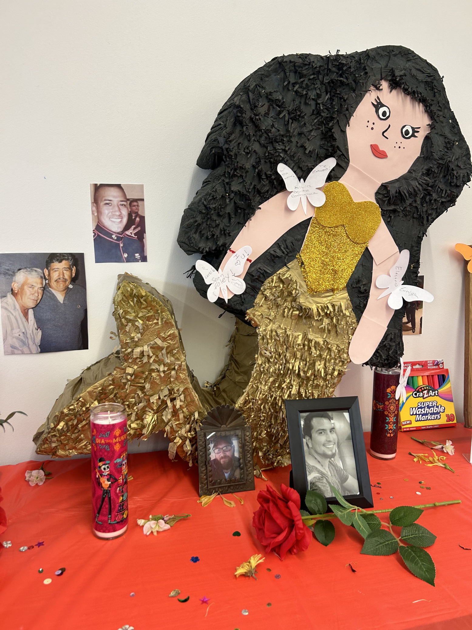 The community ofrenda was the largest of it’s kind in San Marcos and was on display during the beginning of November. Spanning over three tables guests visiting the ofrenda were encouraged to bring a photo of their loved ones who have passed in order to be honored. Paper butterflies were avaible for anyone interested in writing the name of a deceased loved one to be honored during this sacred holiday.
