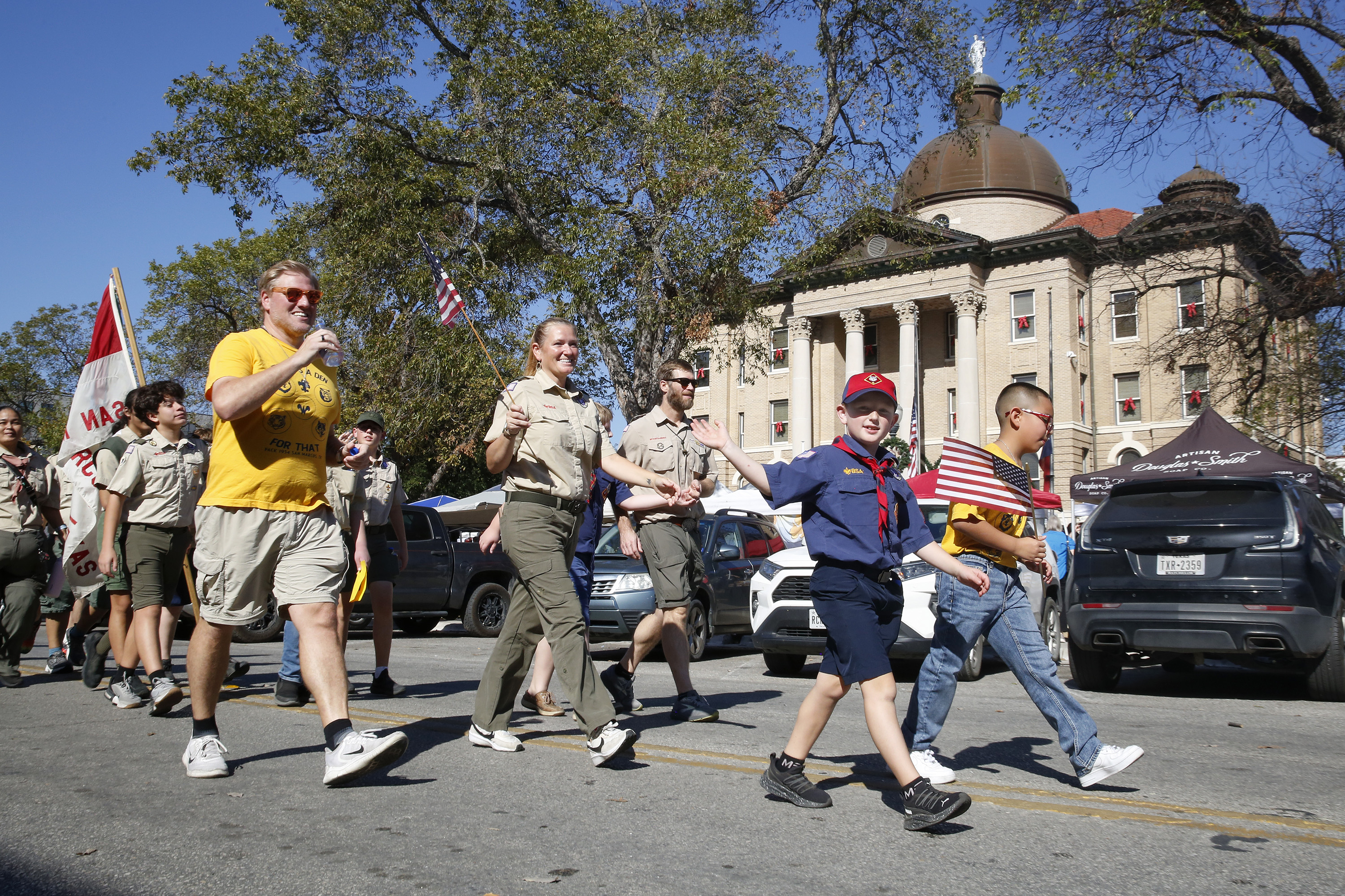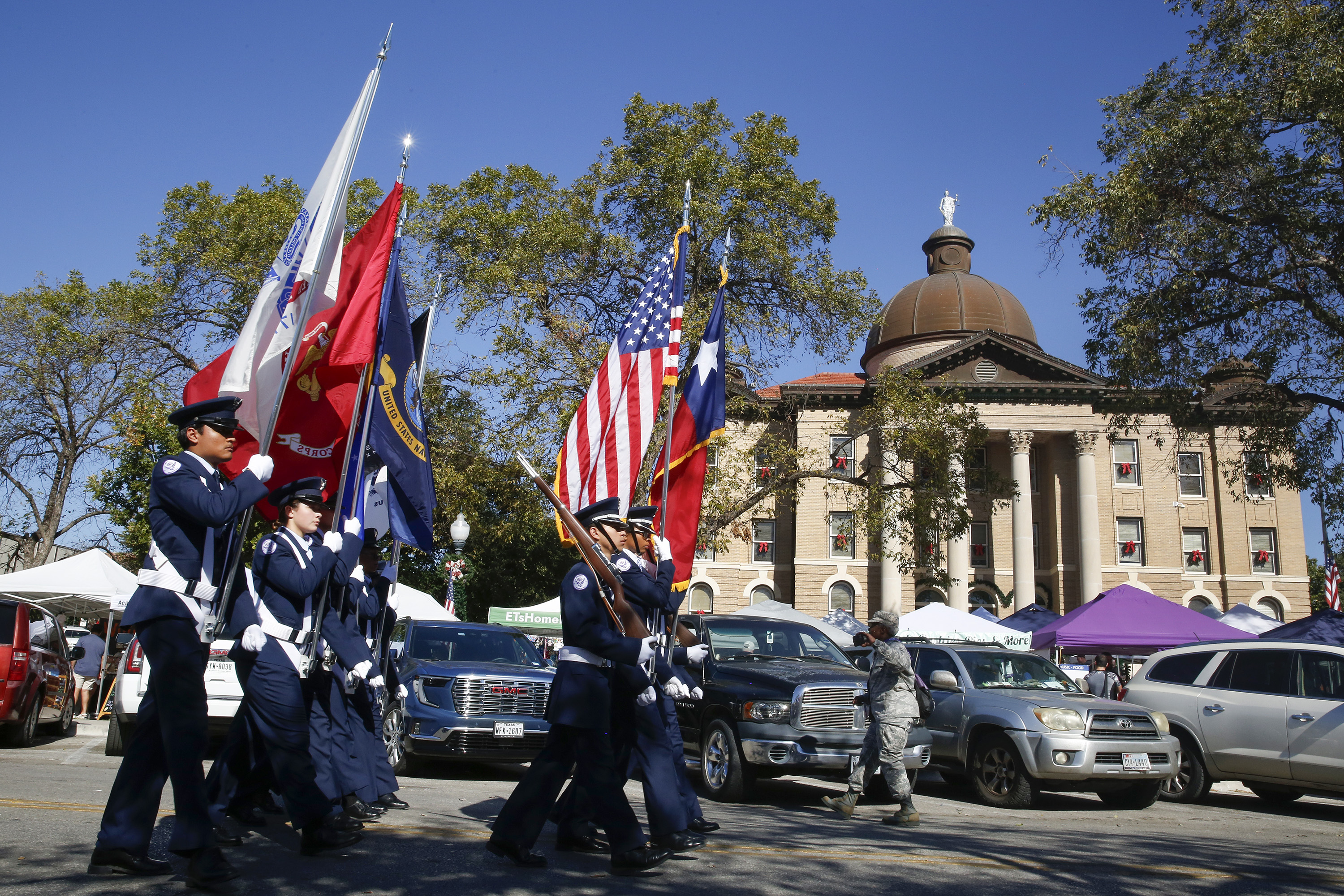 The City of San Marcos, with assistance from the Veterans Affairs Advisory Committee, sponsored the Veterans Day parade in downtown San Marcos on Saturday. The parade featured veterans groups, military organizations, civic clubs, bands, drill teams, public officials, youth teams and classic cars.