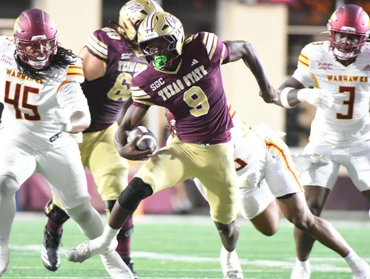 Back on offense, Jackson showed why he is one of the most dangerous quarterbacks in college football. He completed six of seven passes and ran for a 22-yard scramble to lead Texas State on a 11-play 72-yard drive that culminated in a six-yard touchdown pass to Pare to make the score 17-7 with 3:12 remaining in the third quarter.
