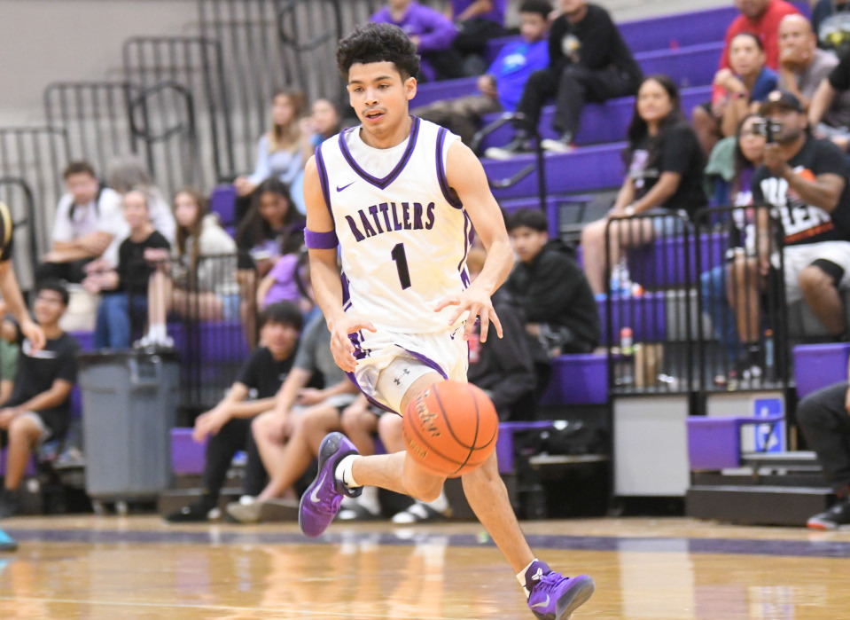 Senior Jordan Bernal takes the ball down the court on the fast break attempt. Bernal was third in scoring for the Rattlers with eight points. Daily Record photo by Gerald Castillo