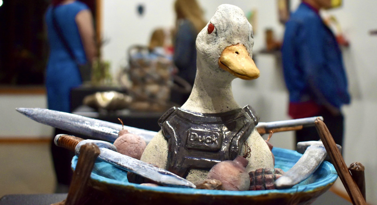 The gallery is open to the public seven days a week from 10 a.m. to 5 p.m. and runs until Dec. 21, showcasing 60 artists. The show includes work from artists across America, representing more than just ceramics. Paintings, kinetic sculptures, and miniature worlds can all be found within the walls of the gallery.