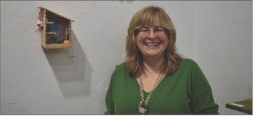 Lisa McPike-Smith poses next to her work titled A Little Beach Time Would Heal Me. Daily Record Photo by Rebekah Porter