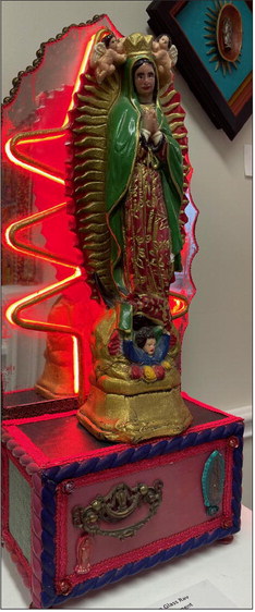Twenty-eight beautiful and personal depictions of Our Lady of Guadalupe by area artists Ana Borne and Rebecca Switzer are hanging in the Upper Gallery at the Price Center now through Jan. 3. The unique Pop-Up Show features work in a variety of media including found object assemblage, handmade paper, fiber art, mosaic, neon, and more. All of the works are for sale.