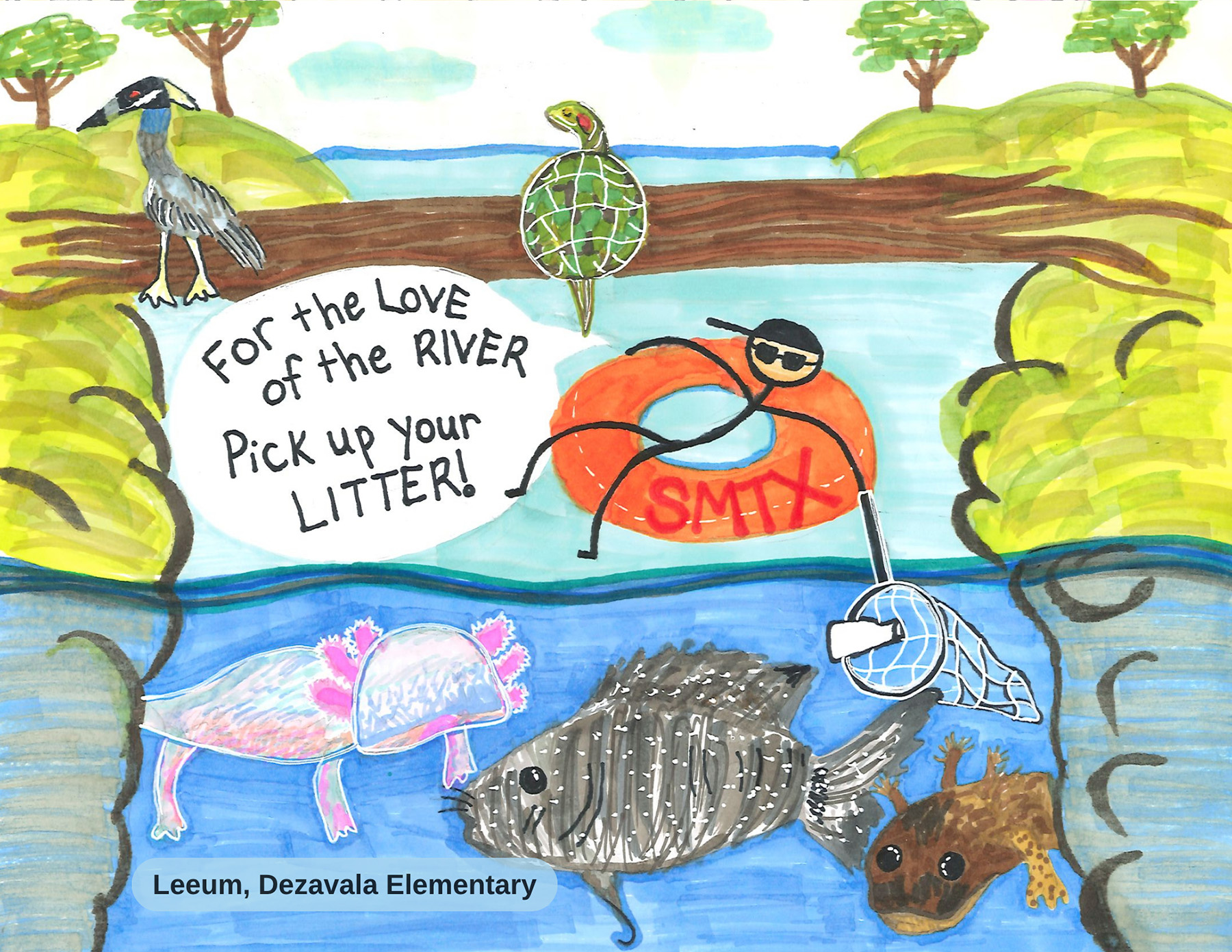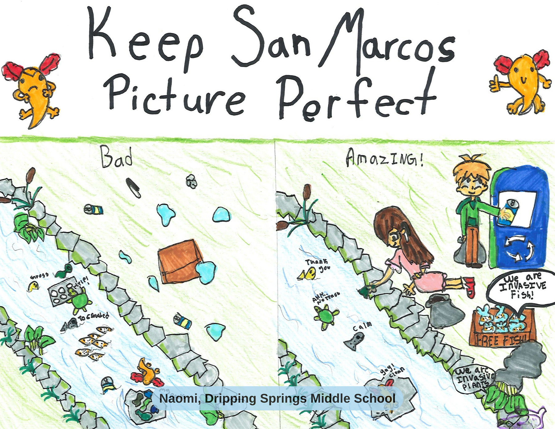 This year, students in grades K-12 across the San Marcos area were invited to illustrate the importance of water quality, stormwater pollution prevention, the mantra “only rain down the drain,” and the protection of the San Marcos River.
