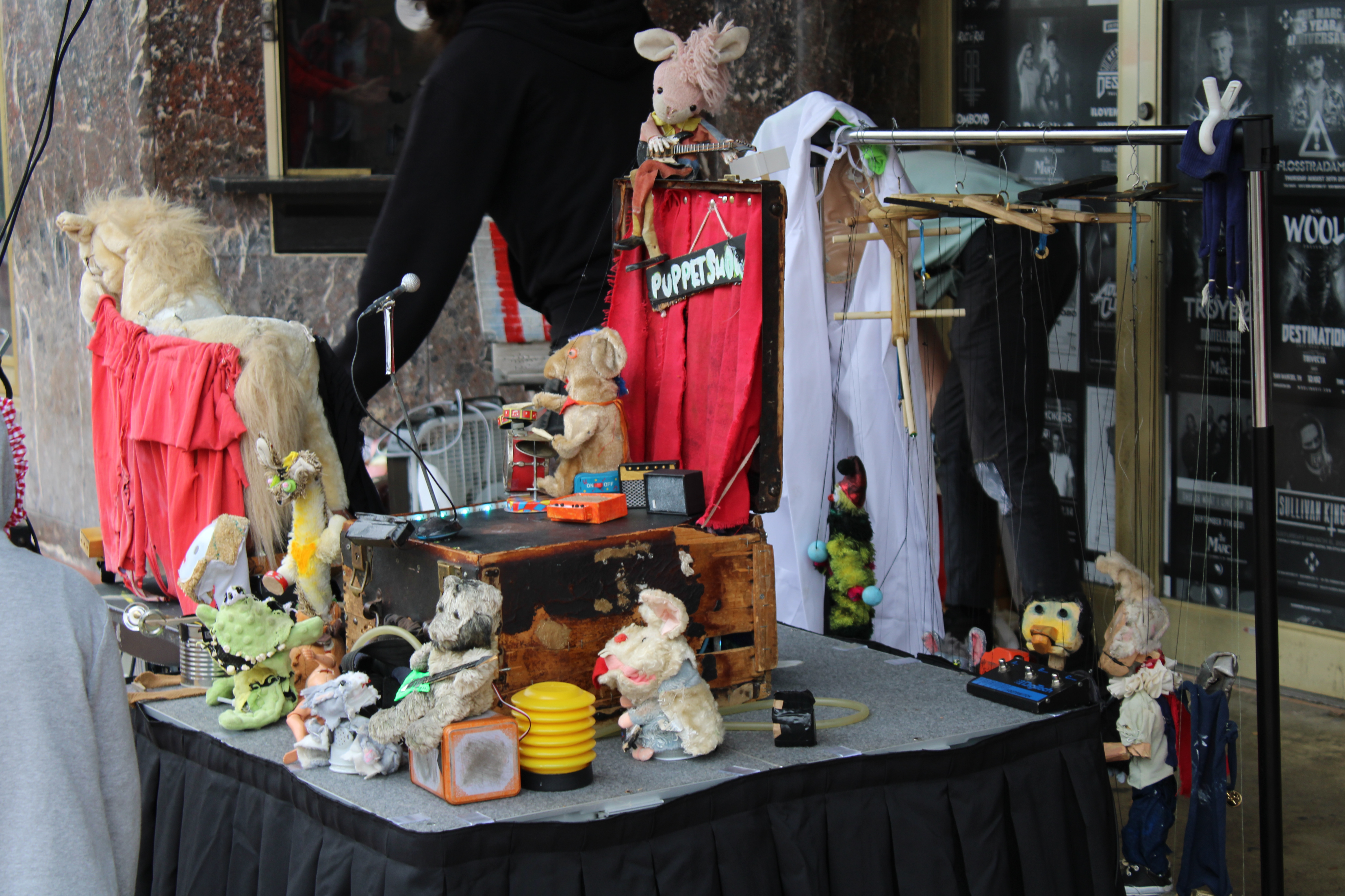 The kids band The Telephone Company headlined the show. The four-piece band had a theatrical performance and a complementary singing duo that brought to life fun stories like “Beast Man,” a tale about what happens when you get grumpy. Mr. Bonetangles, a puppeteer, opened the show with an ornate display of musician animal puppets that rocked the market.