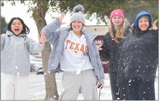 San Marcos woke up to snow on Tuesday morning, and the entire town enjoyed the rare appearance of wintery weather. Schools were closed as were many offices, and people took to the streets to make snowmen and snow angels.
