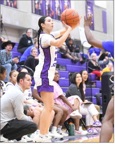 Junior Rileigh Good knocks down the threepointer in the Lady Rattlers win over Schertz Clemens. Good led the team in scoring with 19 points. Daily Record photo by Gerald Castillo