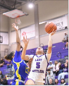 \\Senior forward Melayna Perkins makes the layup despite the contact in the Lady Rattlers win over Clemens. Perkins was third in scoring with 10 points. Daily Record photo by Gerald Castillo