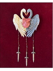 Recently Reyna has explored transforming the imagery in her paintings into a less fluid form, experimenting with metals. A friend convinced her to try out a metals course and at first she found it challenging since she was not used to creating in the 3D form.