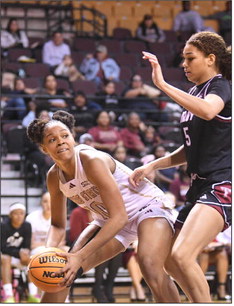 Freshman Angela Carroll battles down low during the Bobcats home game against Troy. Carroll had seven points and nine rebounds against the Trojans. Daily Record photo by Gerald Castillo