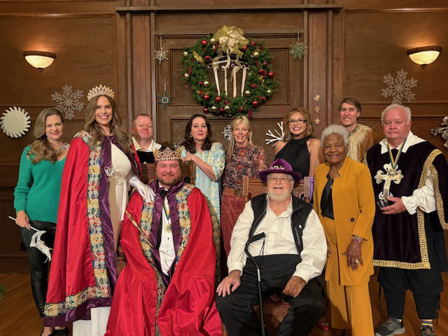 The Krewe of Okeanos ushered in the Carnival Season at their annual Twelfth Night Revels on Saturday Jan. 10 at the Price Center. Krewe members wearing costumes and masks, enjoyed drinks, appetizers and desserts in the Garden Room before assembling in the 1910 Ballroom where Jude Prather and Kathy Martinez- Prather were crowned King and Queen Okeanos XIV to reign over San Marcos during the 2026 Mardi Gras celebrations.