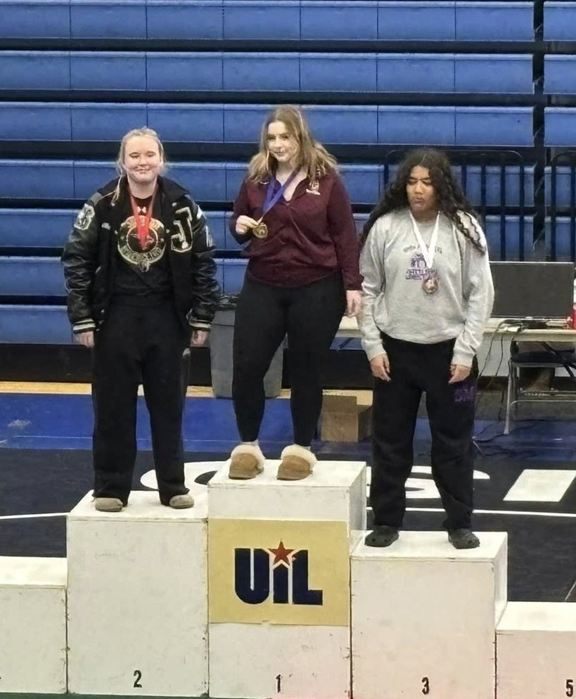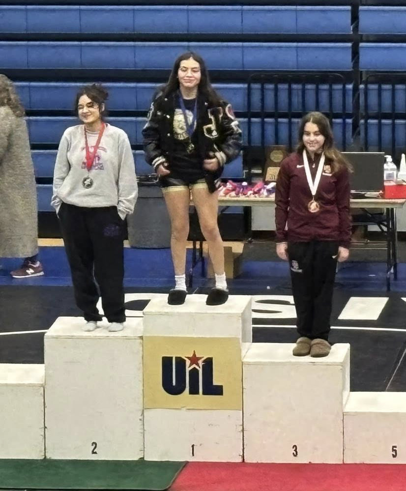 Nicolette Onate took third place in the 190-lb weight class during the UIL District 14-6A Wrestling Meet. Photo submitted by San Marcos Athletics