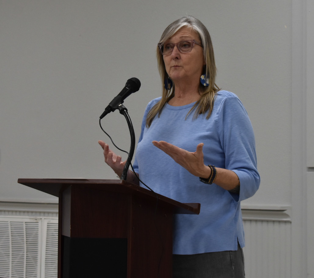 Creative and Marketing Manager for The City of San Marcos Destination Services Charlotte Wattigny presented the project and answered questions from the public. Photo courtesy of Rebekah Porter
