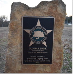 A plaque commemorates Dunbar Park as a Lone Star Legacy Park. Photo courtesy of Rebekah Porter