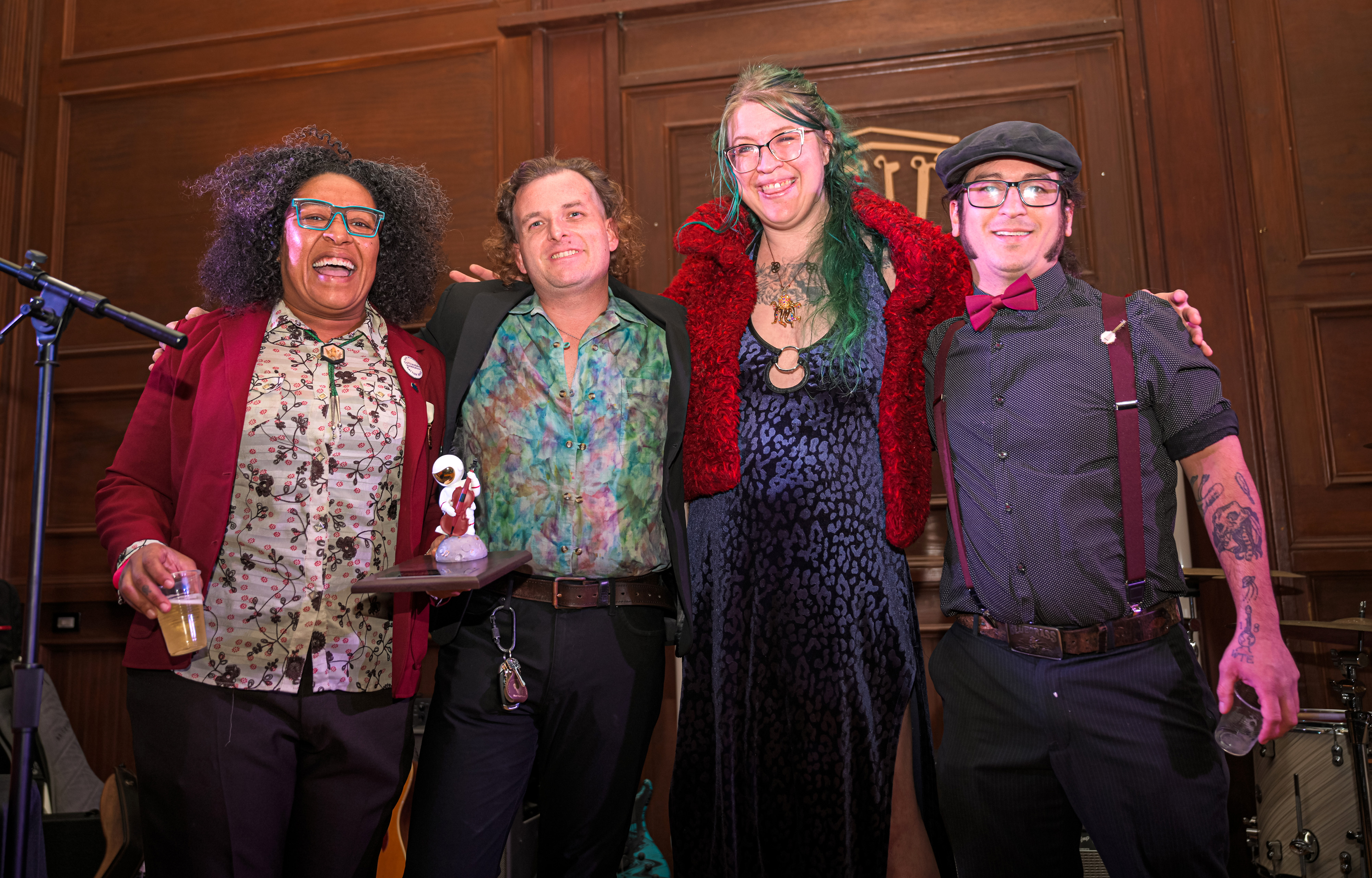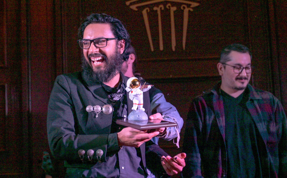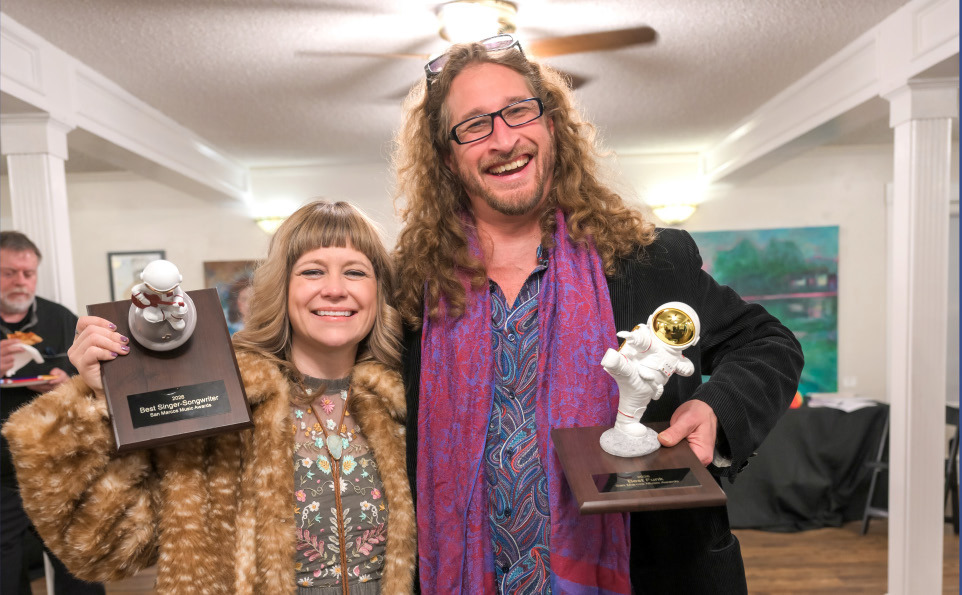 Christopher Paul Cardoza, winner of the award last year, presented the Golden Martian Award honoring the best service from a member of the San Marcos music community. The winner, EZ Maldonado, hosts Songwriter’s Night at Tantra and performs with Loose Screws and Rusty Hearts. He was also chosen Best Promoter, and his band won Best Country.
