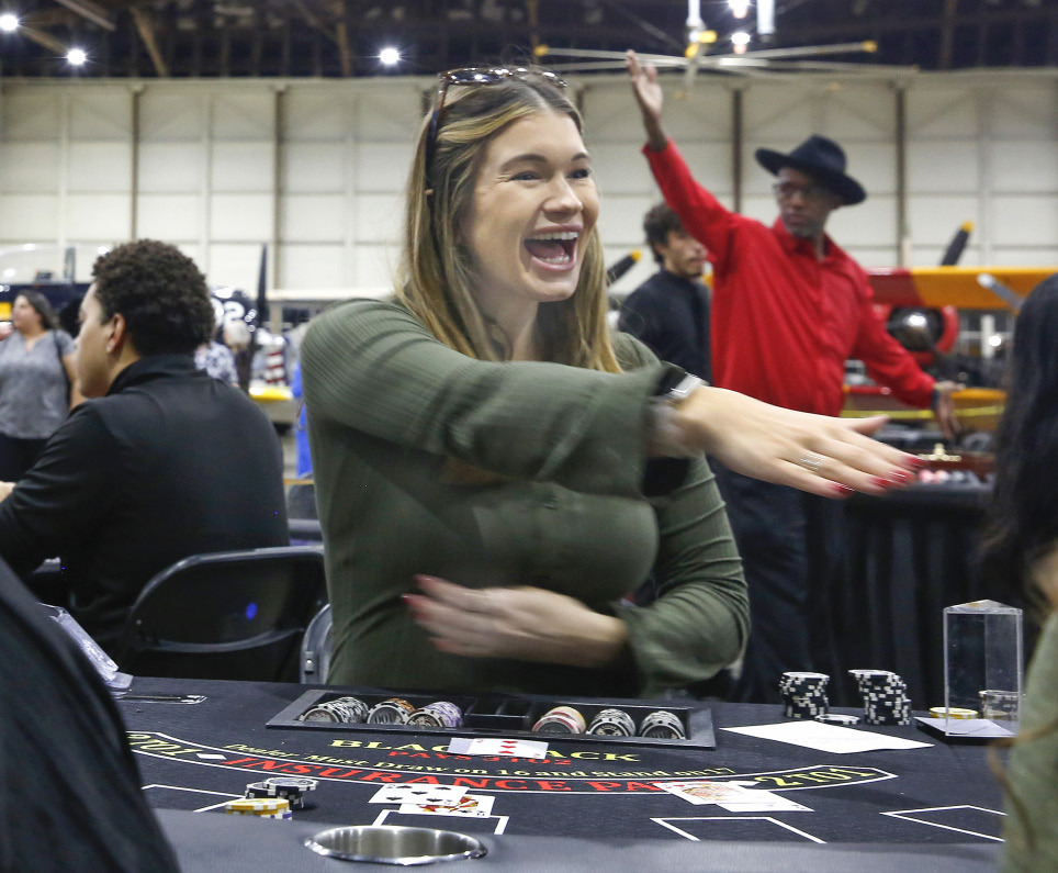 Guests gambled to win raffle tickets for a range of door prizes from local businesses, including a pair of two-carat diamond earrings San Marcos Mayor Jane Hughson and Hays County Commissioner Morgan Hammer were among the guest blackjack dealers. “It’s so much fun,” said Mayor Hughson. “I would rather deal than play, because you can’t lose.”