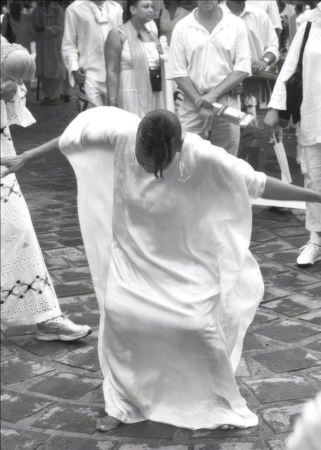 Terrence Moline, who grew up in New Orleans, came to Austin as a Hurricane Katrina refugee. The black-and-white photographs he calls “Glimpses” are but a few of his spontaneous portraits through his lens of love for the deep culture and music of his home city.