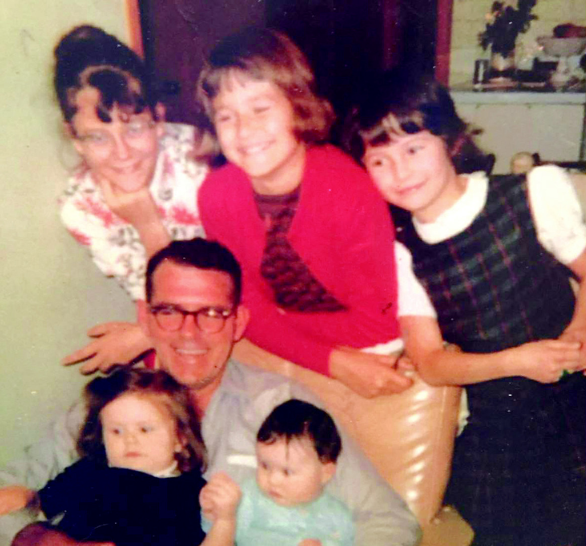 Pictured is Pam’s family as they grew up. From left to right, Debra Talbert, Pamela Gravis, Ava Purkey, Carrell Die, Amy Ubernosky and baby Melanie Gayle.