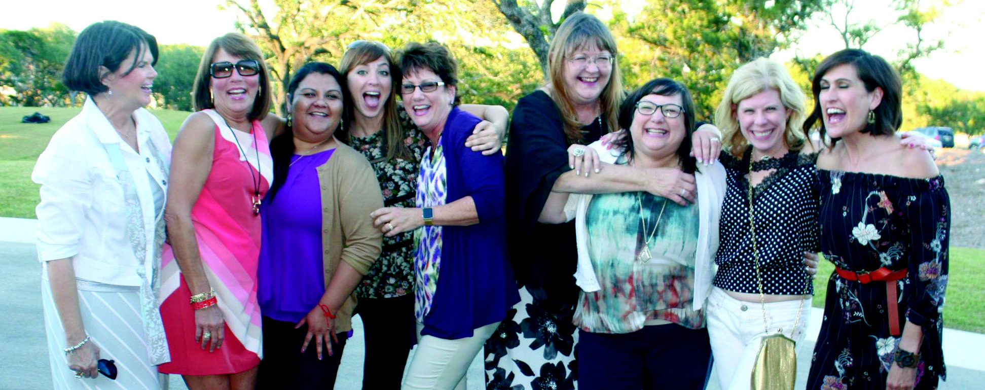 A social butterfly who would light up the room with her boisterous personality, Pam is pictured with some of her friends. From left to right, Lisa Searle, Tracy Herman, Elizabeth Castañeda, Tabitha Black, Kay Wilson, Pamela Gravis, Lisa Vaquera, Amy Stanfield and Pat Fernandez