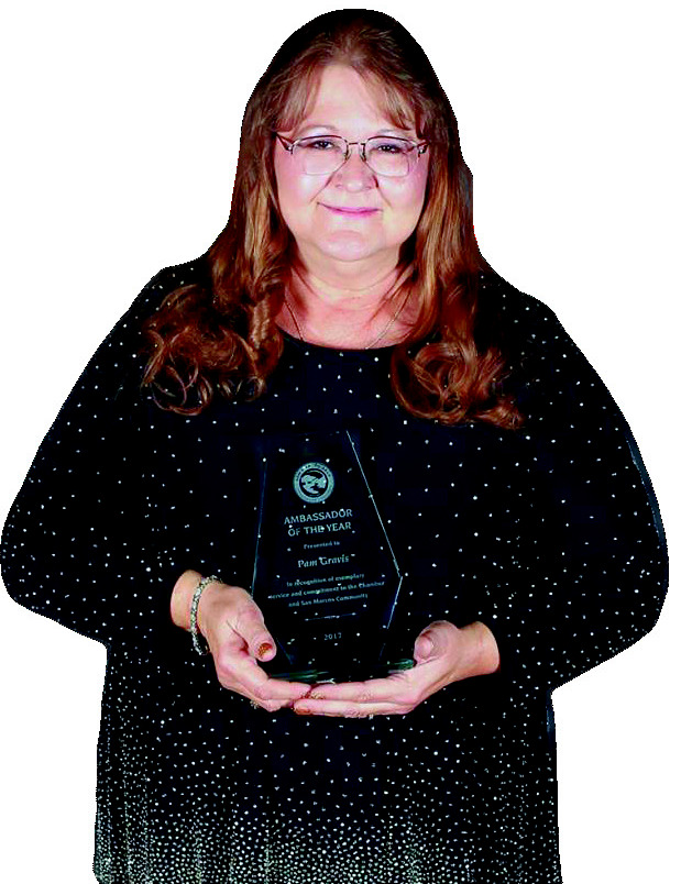 Pam was a serial volunteer in San Marcos, culminating with a welldeserved Ambassador of the Year award from the San Marcos Area Chamber of Commerce in 2017.