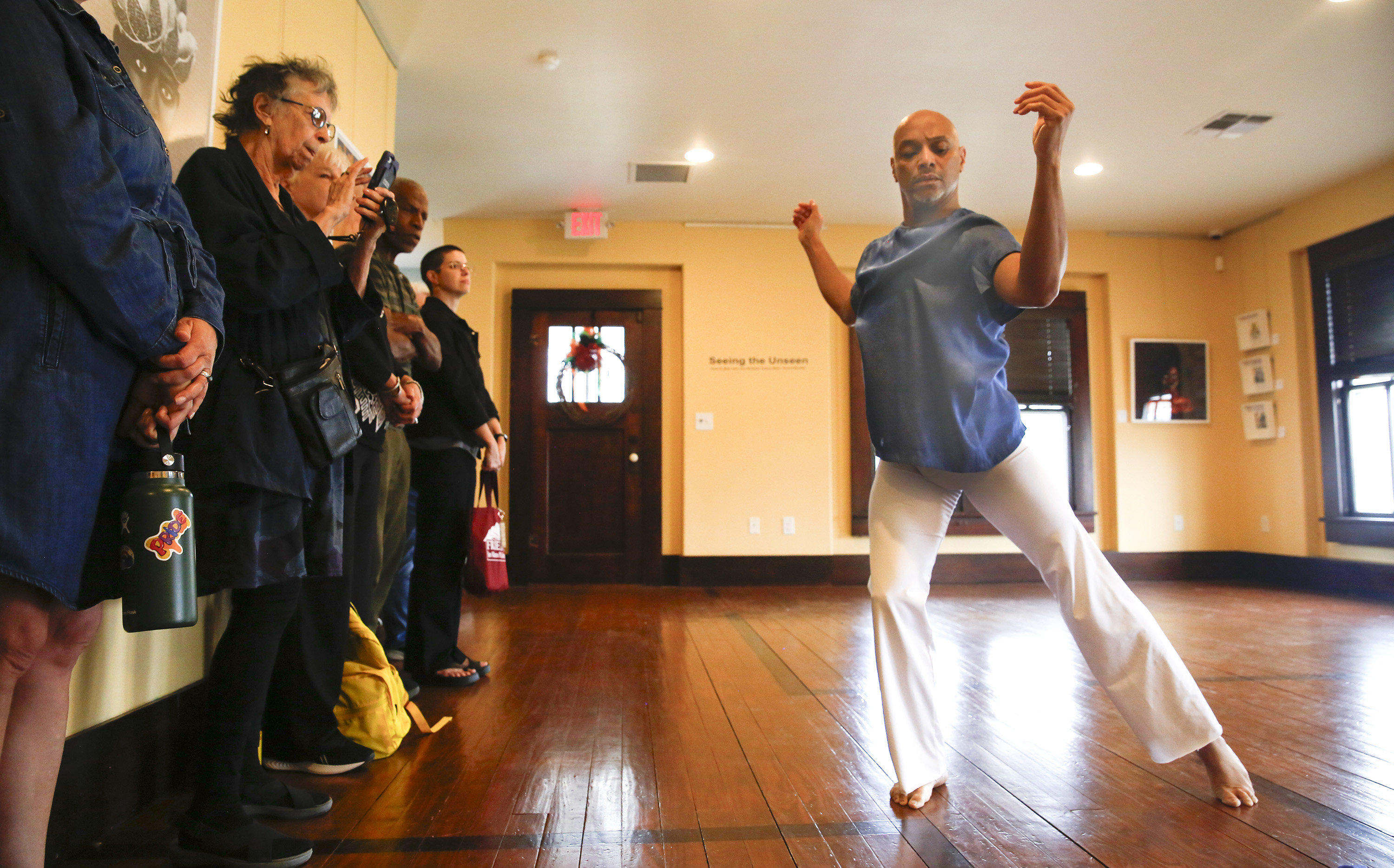 Following the Read-In, Cephas House volunteers cleared the chairs out of the main room to make room for a solo dance performance by former Alvin Ailey dancer and current Texas State dance professor Torens Johnson.