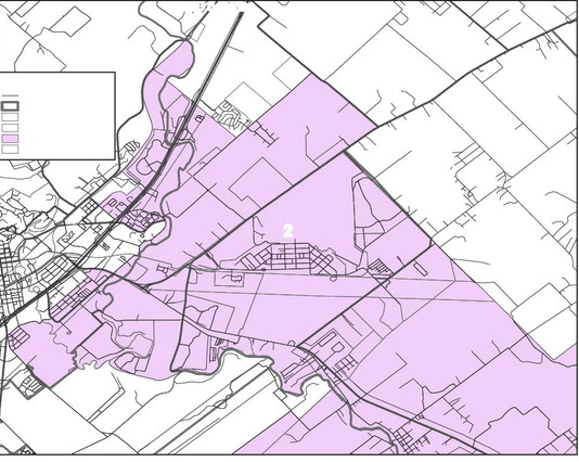 Much of District 2 runs along Highway 80 east of San Marcos, however the district widens significantly to incorporate areas in the general area of Staples. District map courtesy of SMCISD