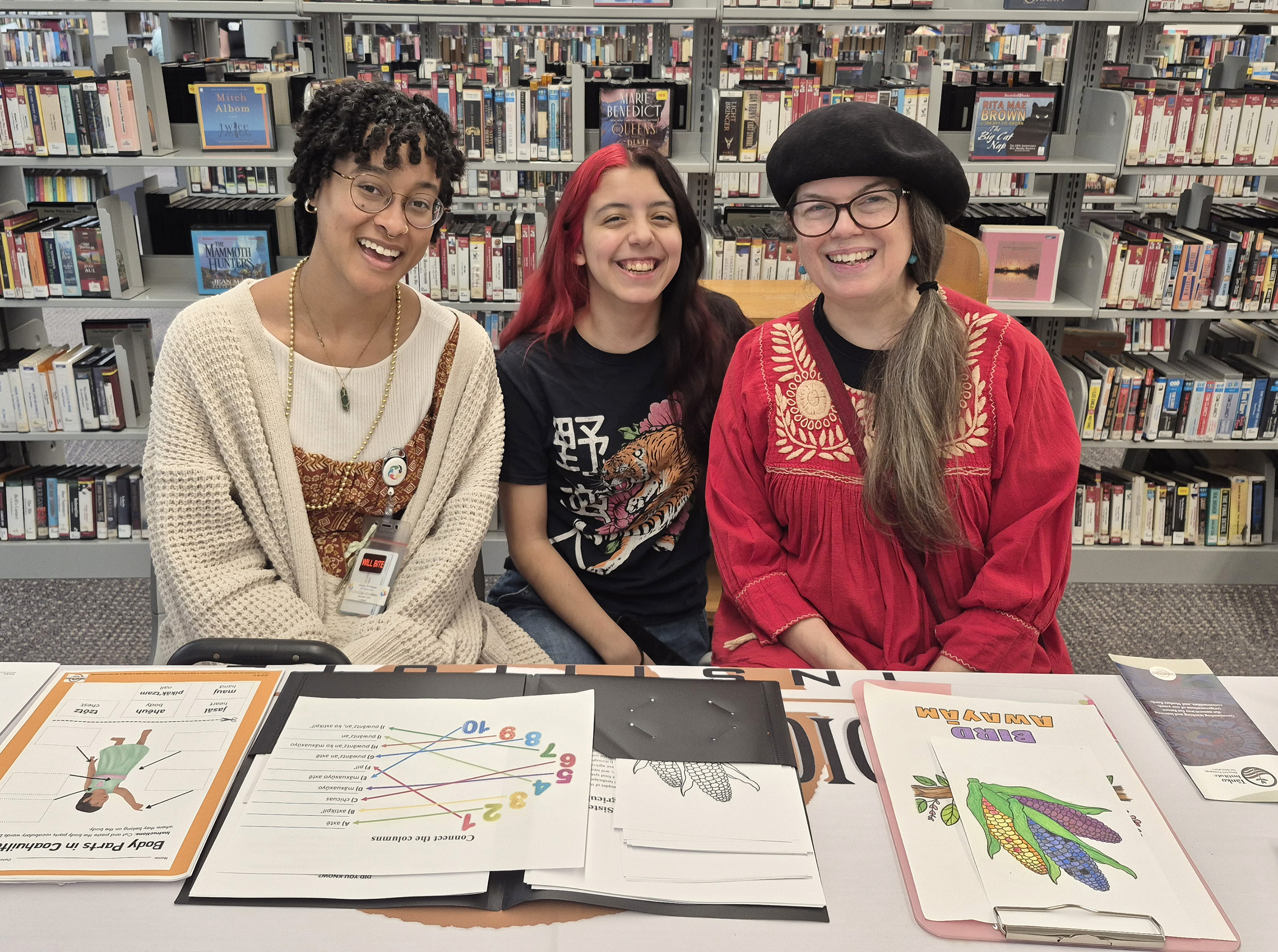 The fair also featured vendor tables in the foyer, crafting and information tables in the main reading areas and workshops and panel discussions in the conference and meeting rooms. Among the workshop topics were character art, collage art, book cover paintings, murals and even codices.