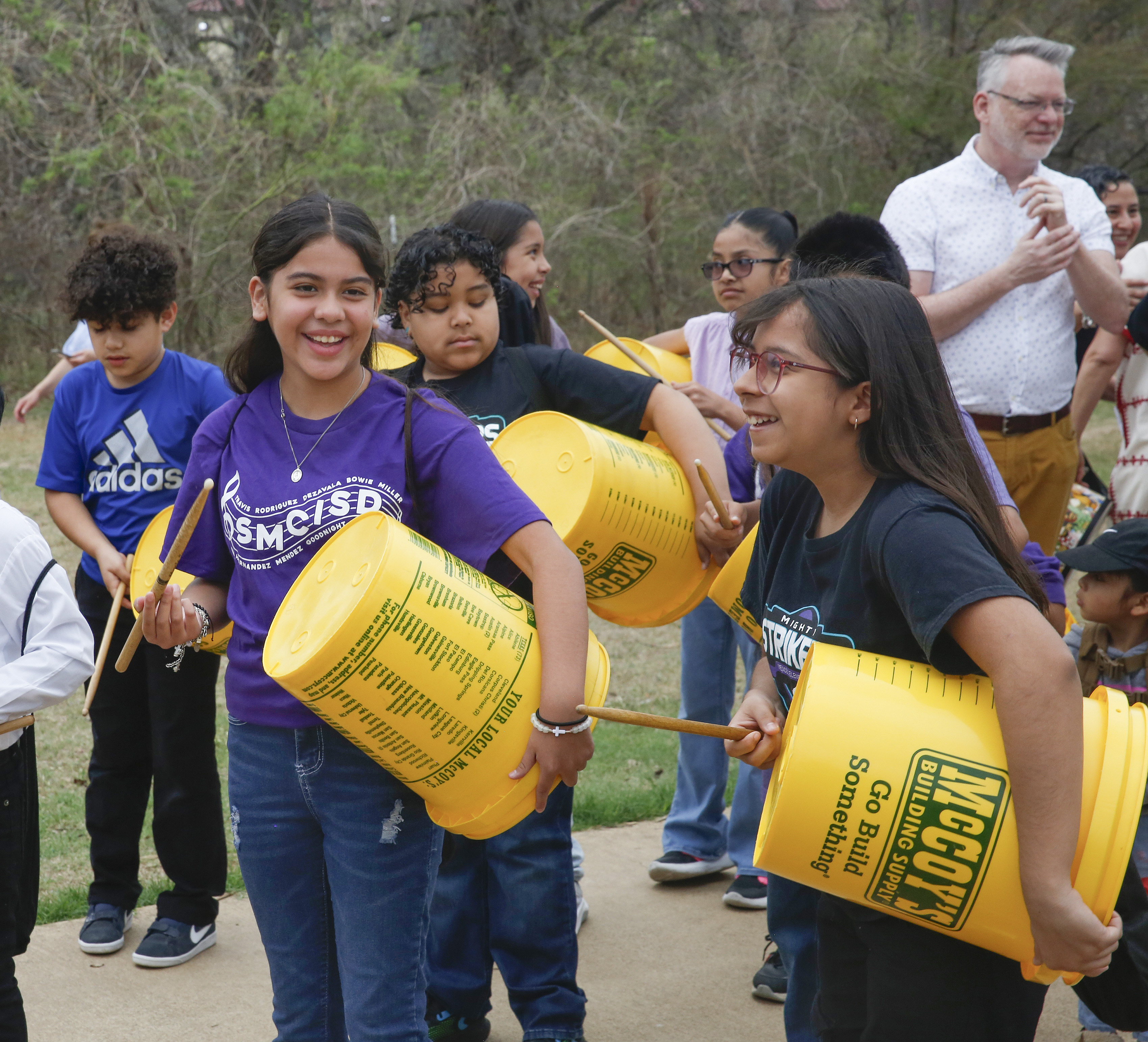 Mendez Elementary principal Suzanne Perkins joined her students drumming on buckets during the parade. “It was so exciting to be able to walk in the parade and be a part of the events.”