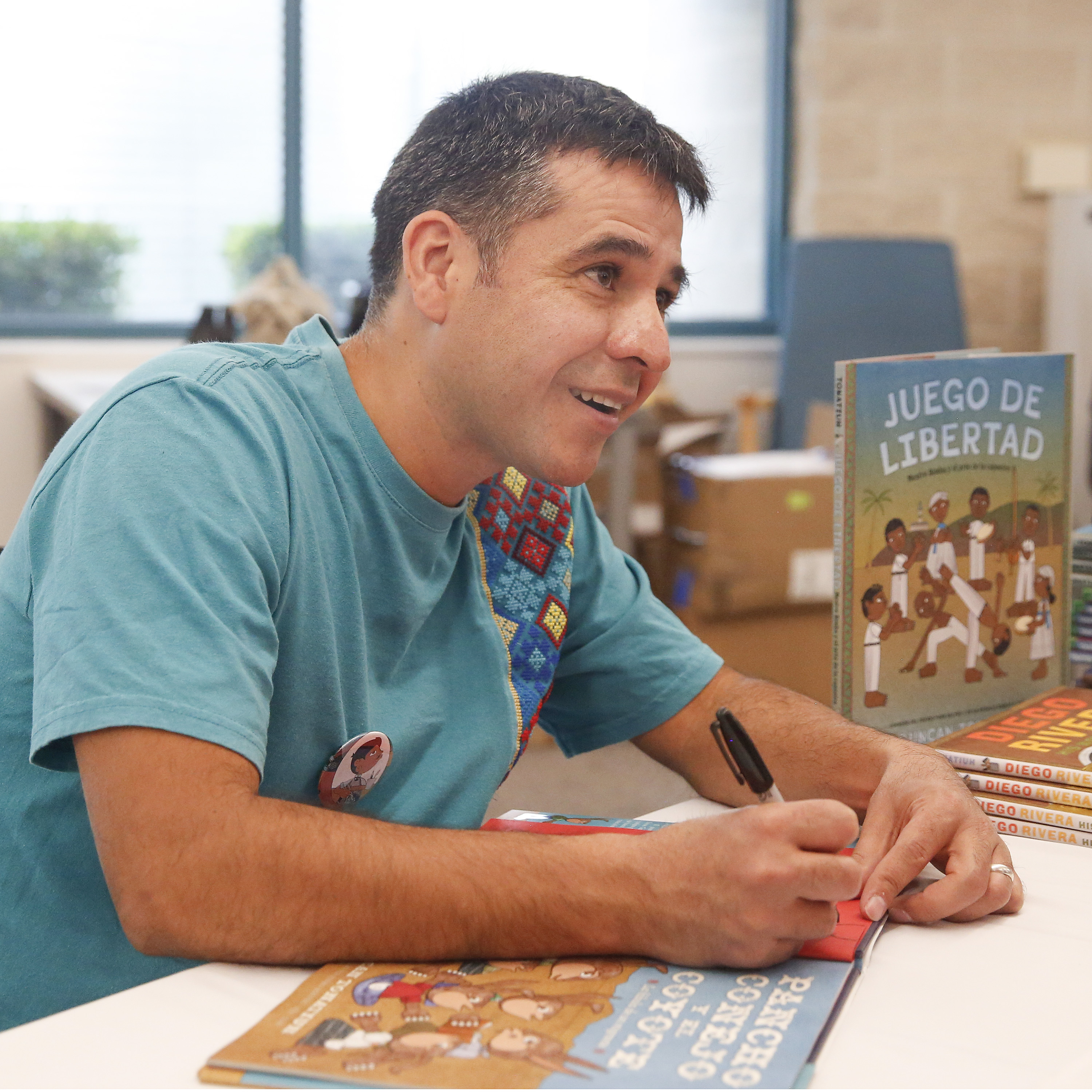 Author Duncan Tonatiuh has won the Rivera award multiple times, including most recently in 2021 for “Feathered Serpent and the Five Suns: A Mesoamerican Creation Myth.” He talked about the way the event unites the San Marcos community.