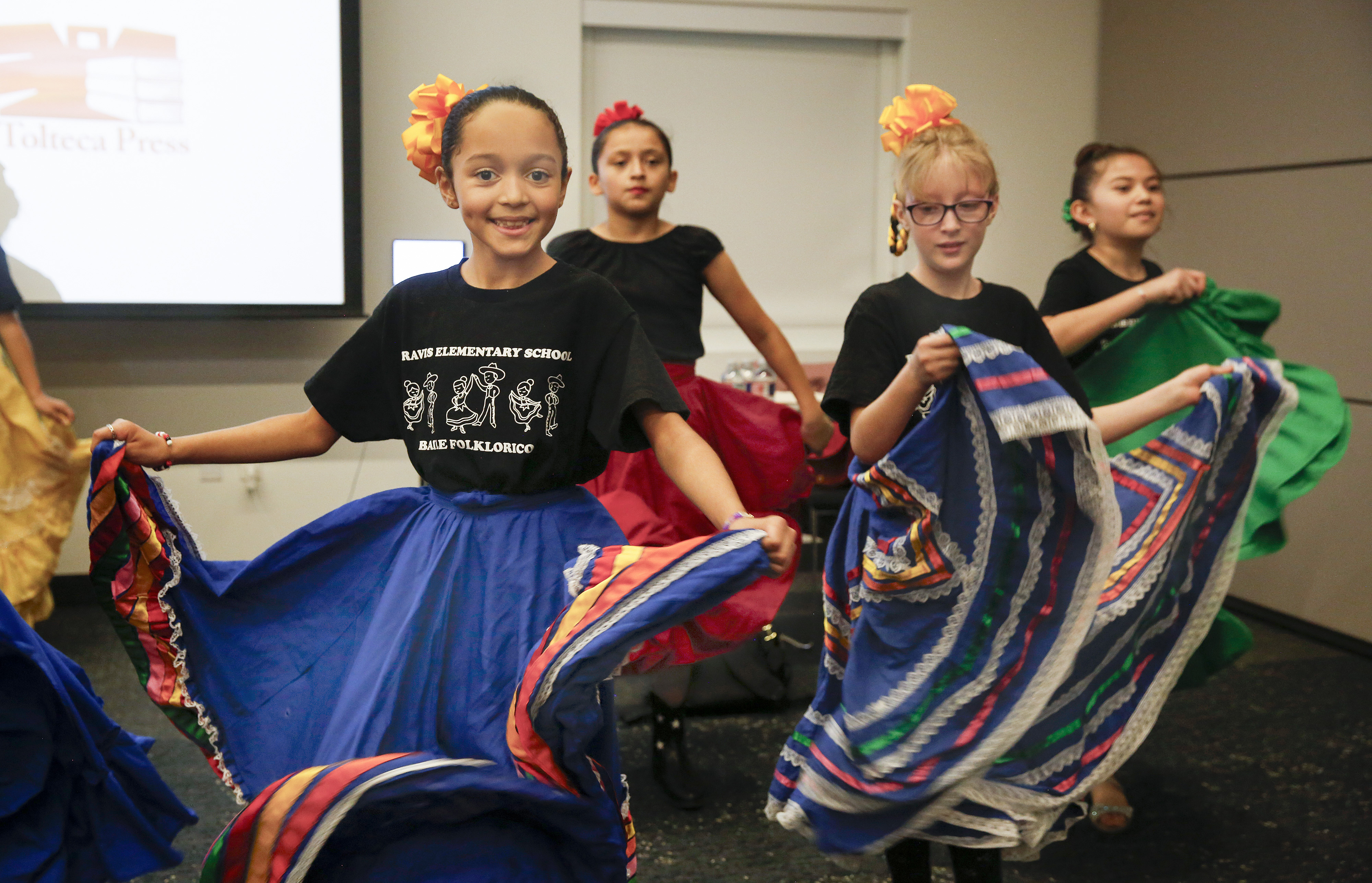 During their presentation about their book “The Spirit of Chicano Park” (2021 Rivera Award winner) author Beatrice Zamora and illustrator Maira Meza talked about the importance of preserving Latin culture. The presentation began with a performance by the Baile Folklorico group from Travis Elementary.
