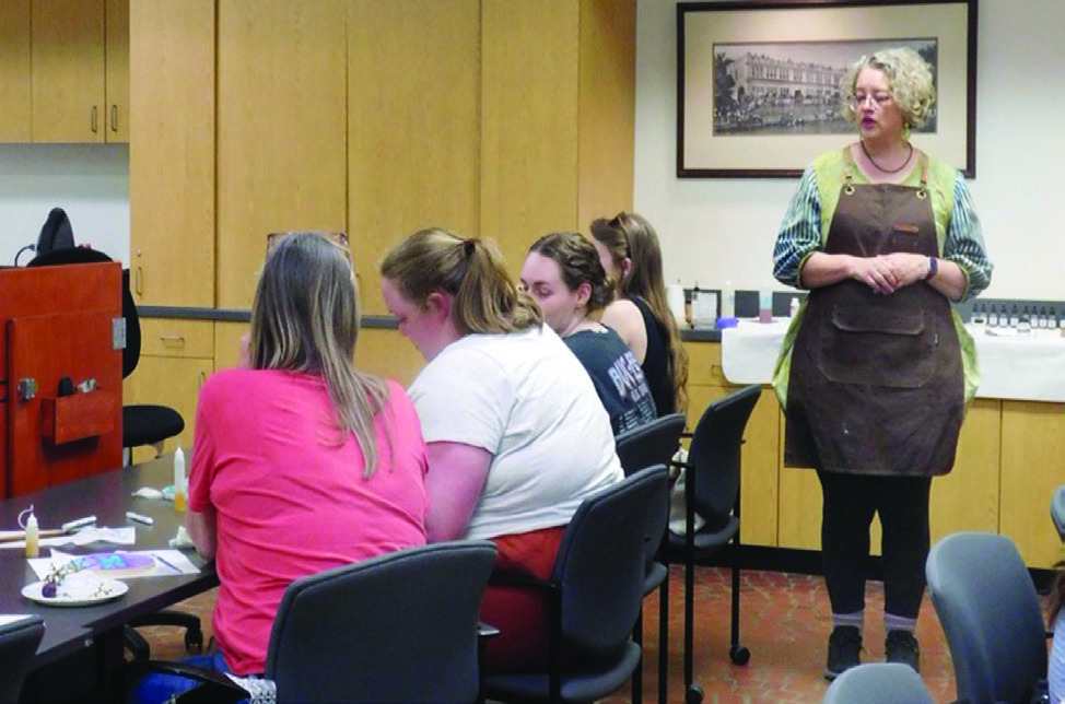 Gwendolyn Hustvedt leads a silk-painting course at the Meadows Center on Feb. 28. Photo courtesy Kira Utter