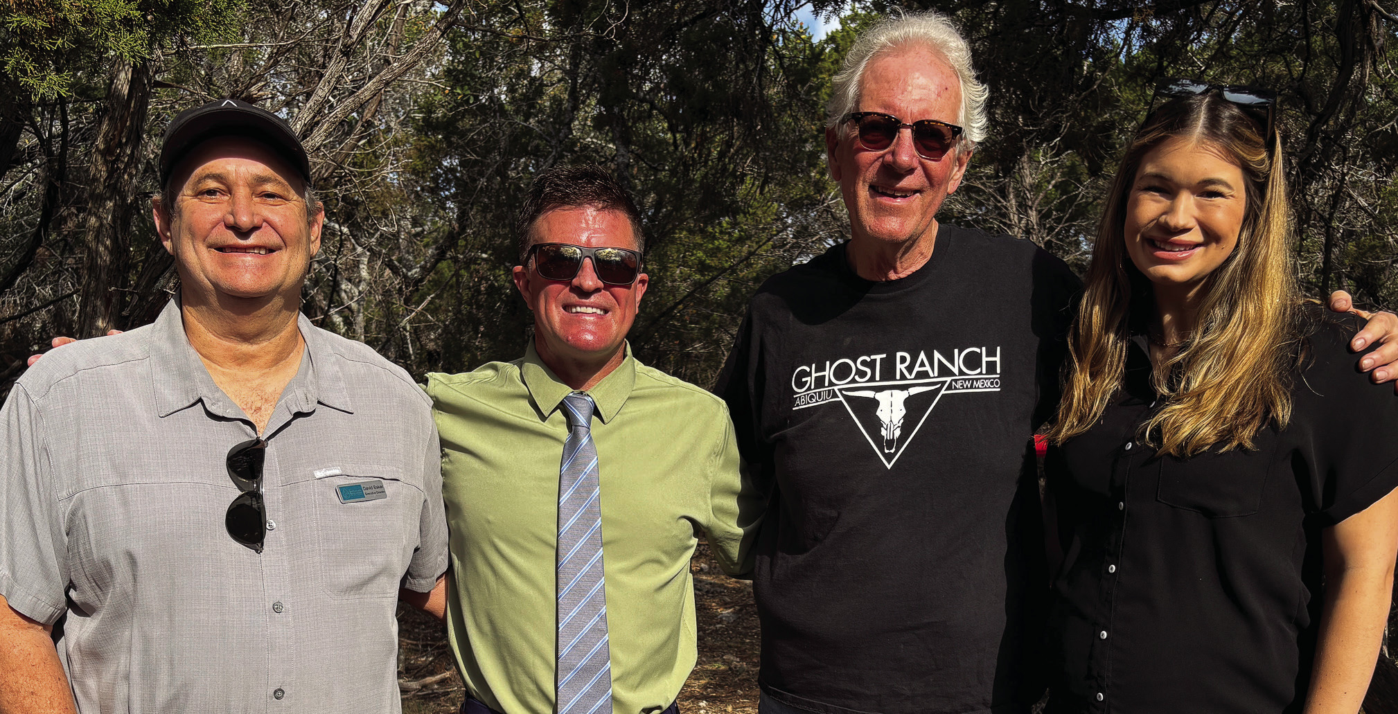 Executive Director of the Watershed Association David Baker, Deputy County Administrator Tucker Furlow, Watershed Association Board Member Dave Dunstan and Hays County Commissioner Morgan Hammer link arms during the dedication. Photo by Teresa Kendrick