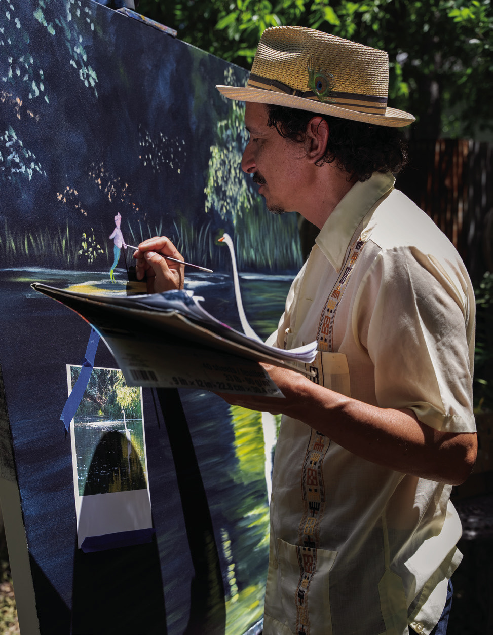 The San Marcos Studio Tour offers a rare, behind- the-scenes look at the creative chaos within artists’ studios — spaces where inspiration thrives and masterpieces are born. From paint-splattered floors and walls covered in reference photos to clay-caked ceramic wheels and bustling wood and metal workshops, each studio visit offers a glimpse into the heart of the creative process. This year, attendees will have two weekends to explore a dynamic array of athome studios, warehouse workshops, and pop-up installations across San Marcos.