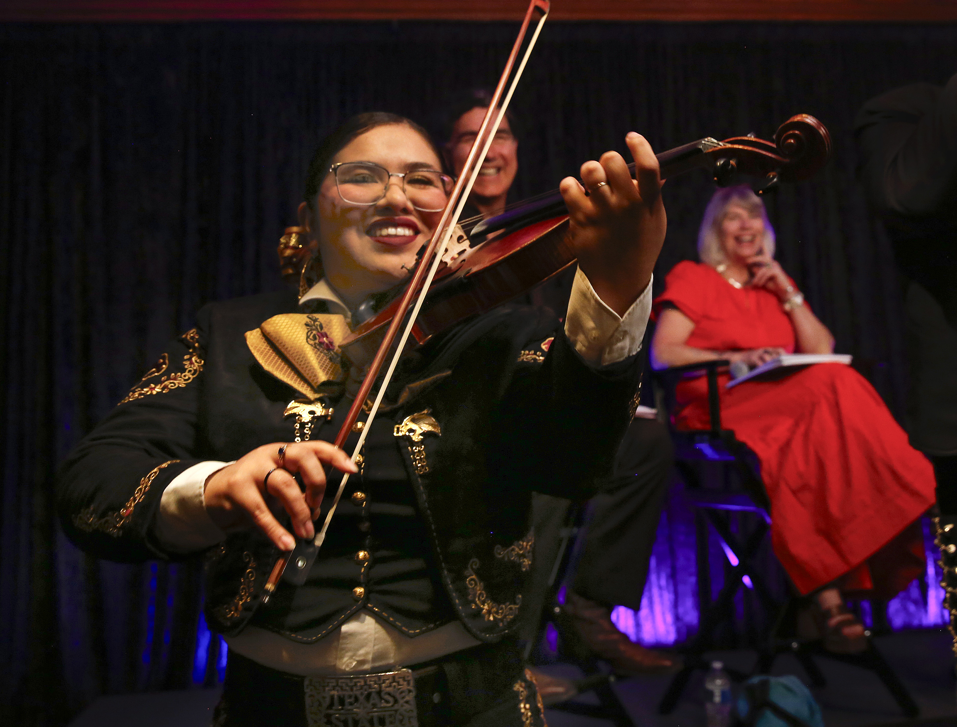 Following a performance from Texas State’s Mariachi Nueva Generación group to kick off the presentation, moderator Saldaña offered his thoughts on the magnitude of Selena’s legacy.