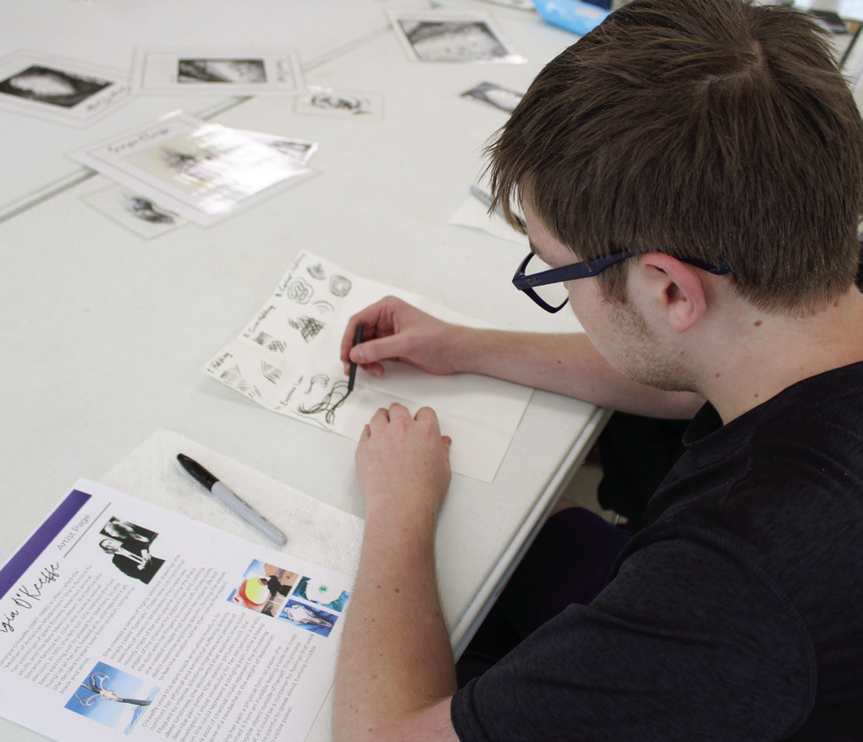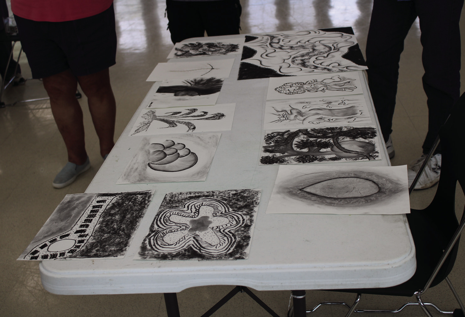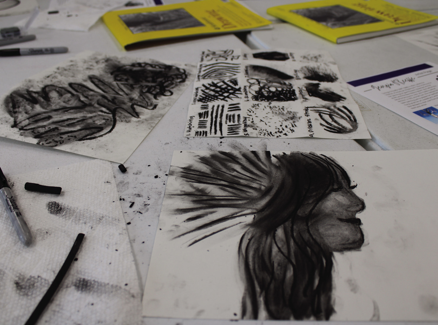 The class practiced a variety of charcoal techniques before creating their drawings.