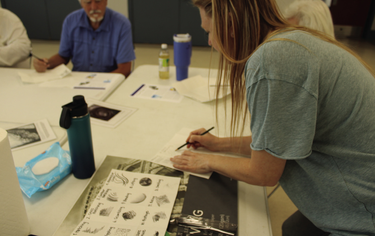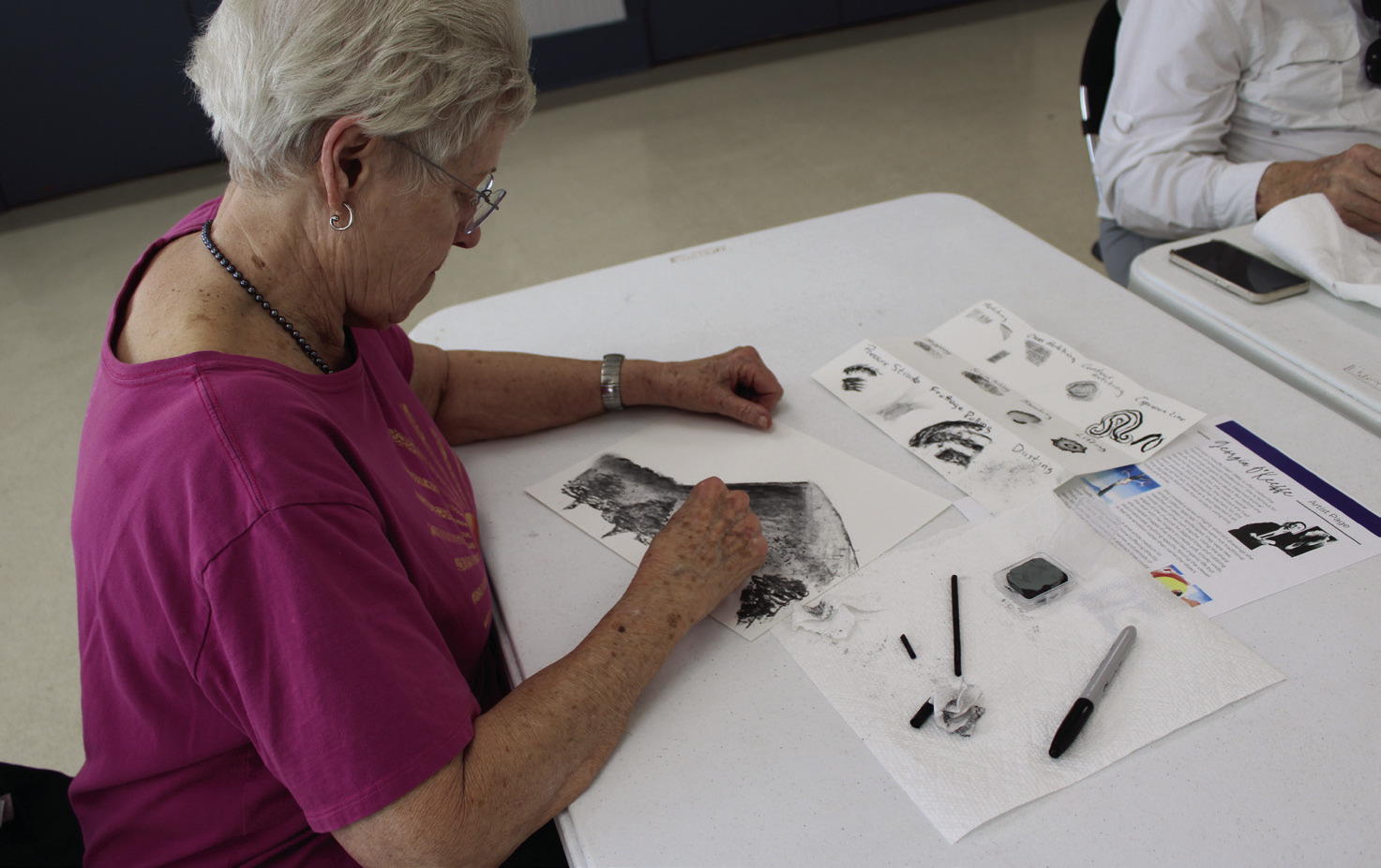 Marianne Reese, founder of Lifelong Learning, practices with charcoal.