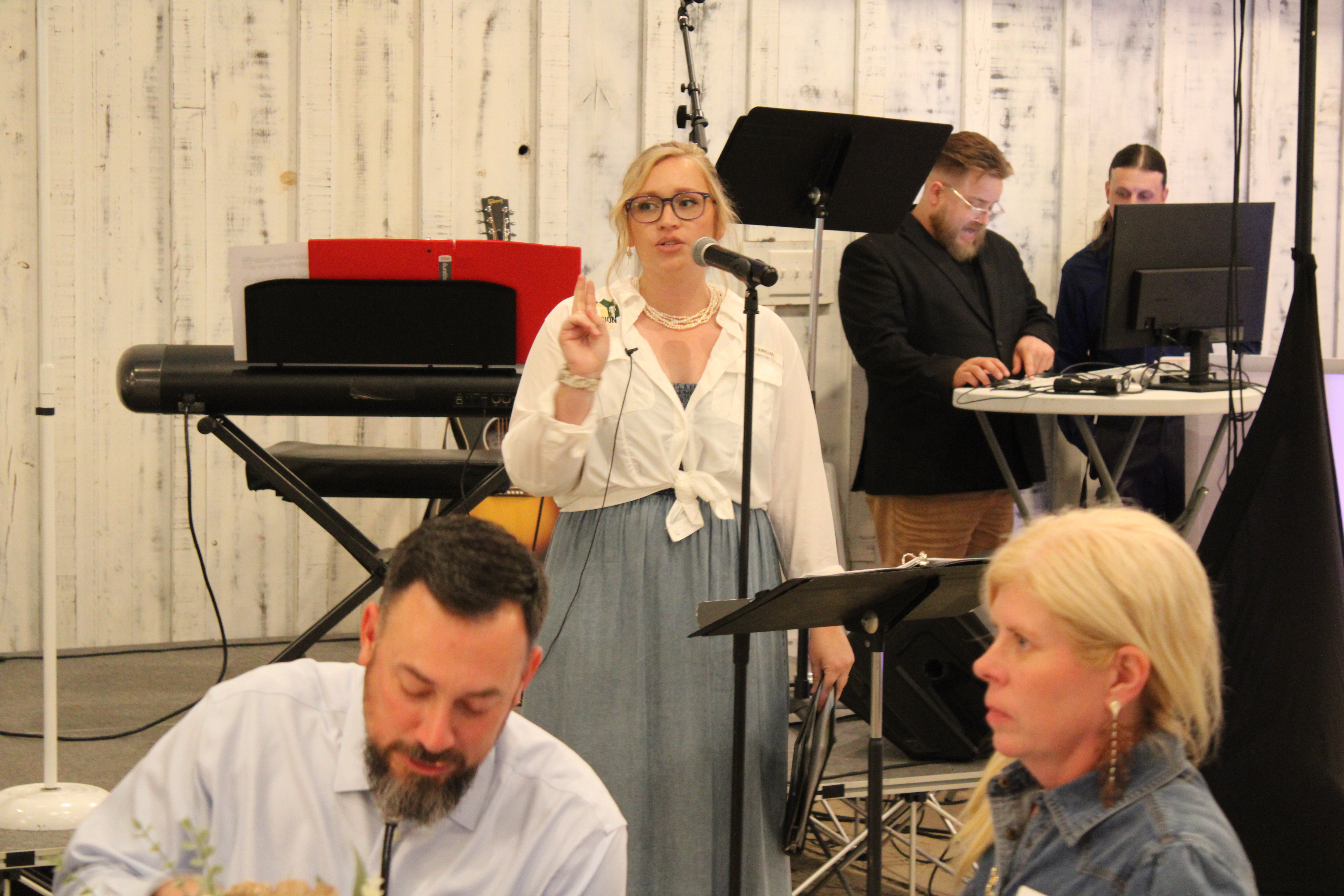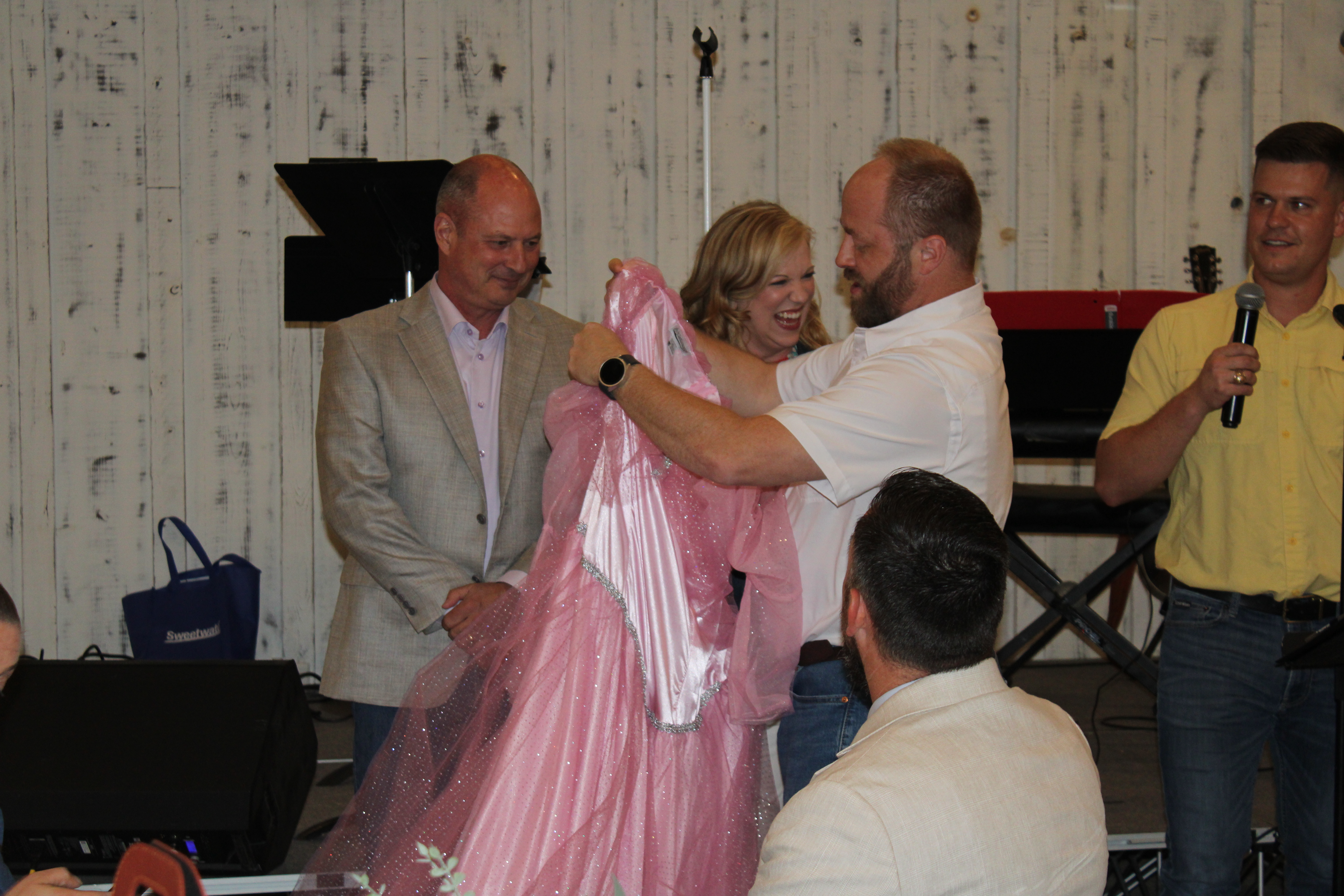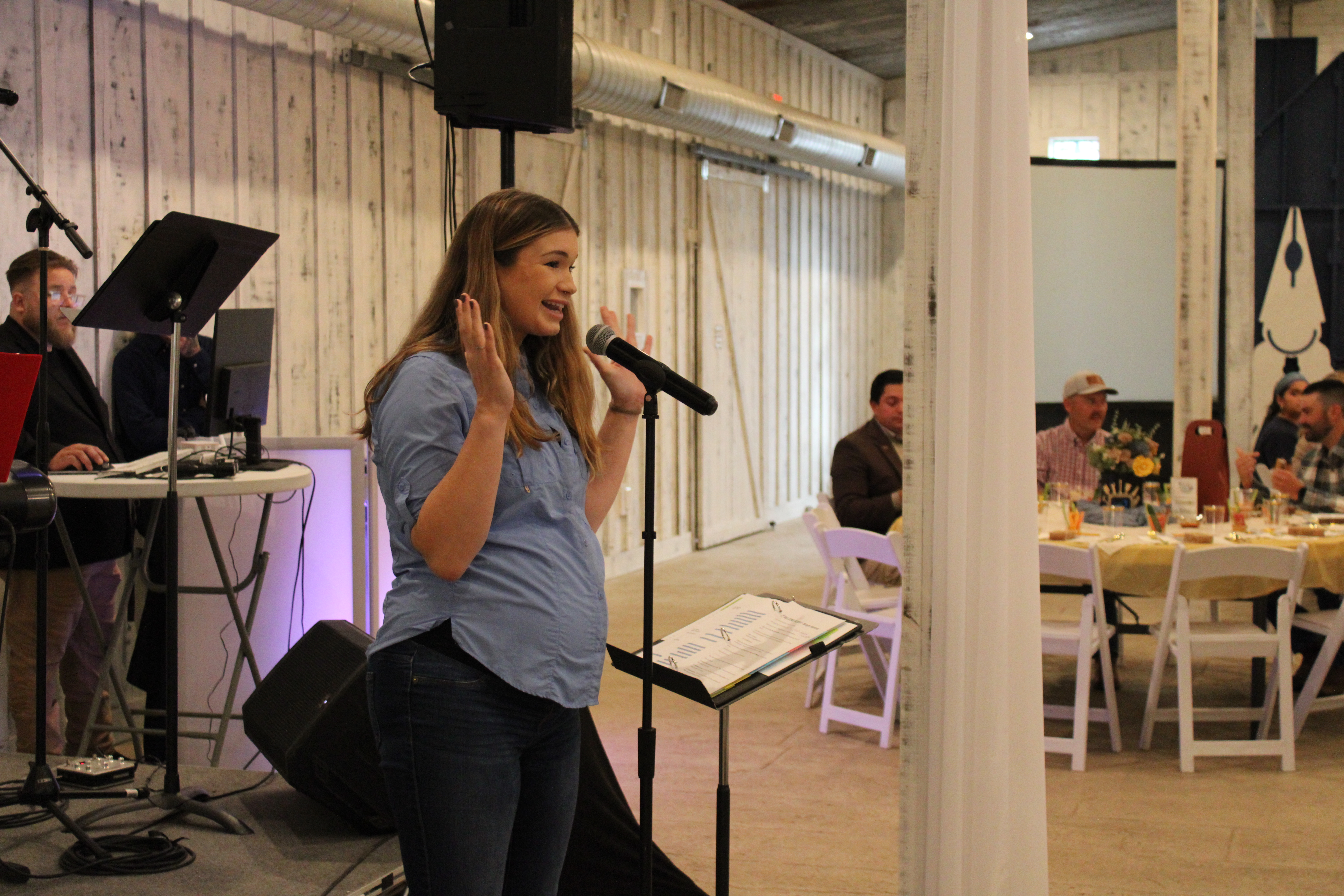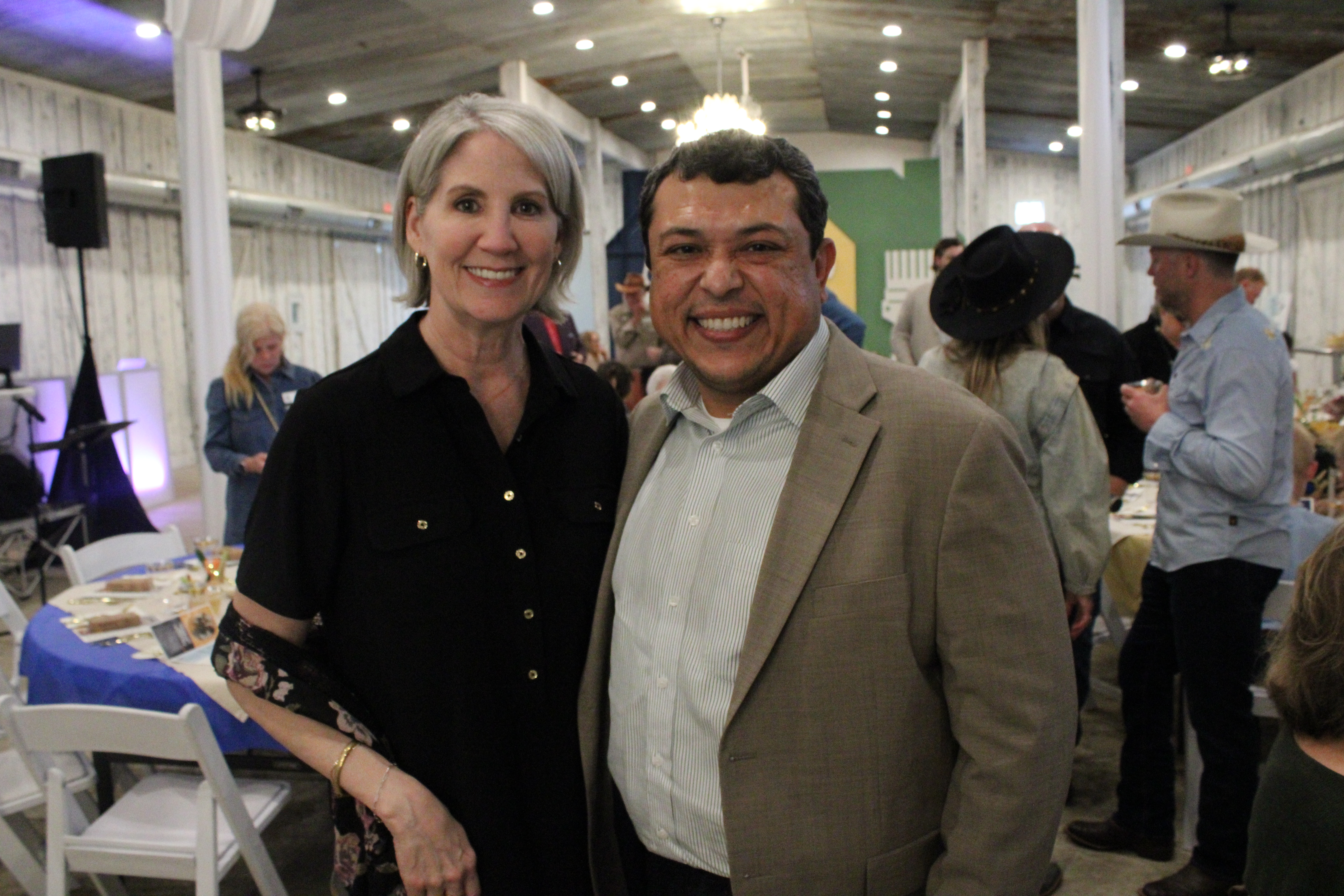 At 5:30 p.m., 180 guests gathered in a rustic barn on a hill among live oaks at the Harper Hill Ranch. Outside Longhorns and miniature donkeys grazed on the 128-acre estate near Texas Hwy 123. The fundraiser included live music, children’s performances, live and silent auctions, a pledge drive, a message, a raffle and a meal.