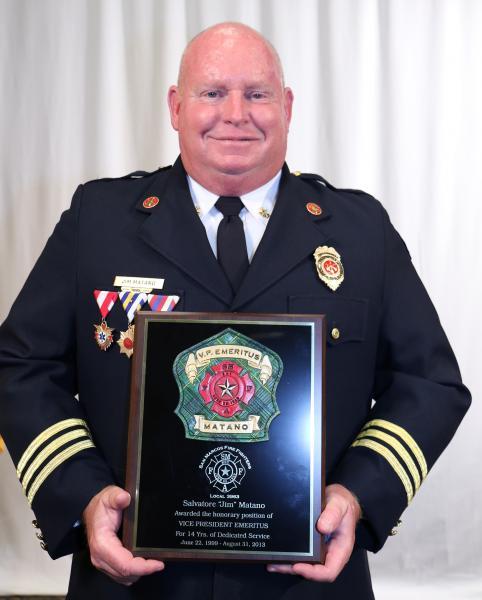Battalion Chief Jim Matano was awarded the honorary position of Vice President Emeritus from SMFFA.