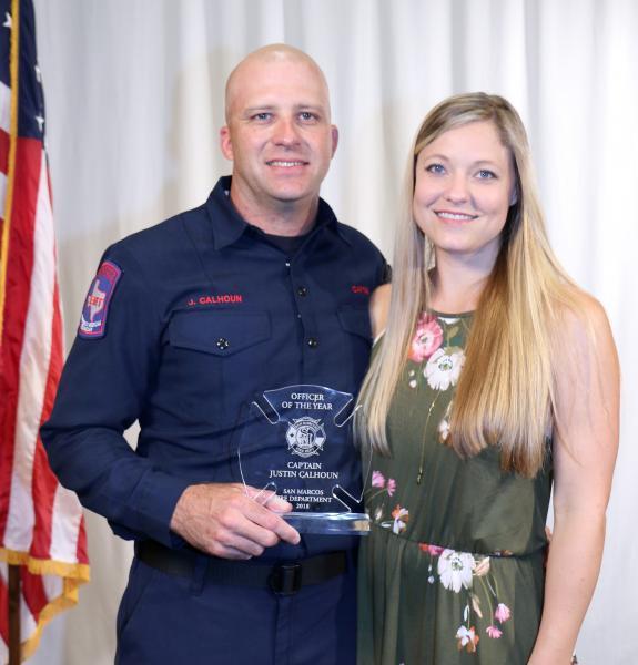 Captain Justin Calhoun was awarded Officer of the Year. He’s pictured here with his wife, Rachel.