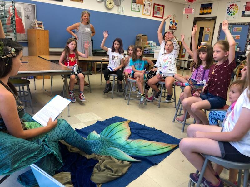 Maya the Mermaid answers questions for a class during a Mermaid Chat.
