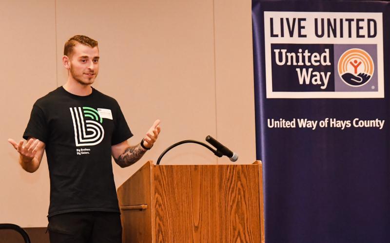 Chris Muyshondt, who volunteers at Big Brothers Big Sisters of Central — a non-profit that the UWHCCC works with — told his story of helping his “little brother” Keontray during Wednesday's United Way fundraising event.