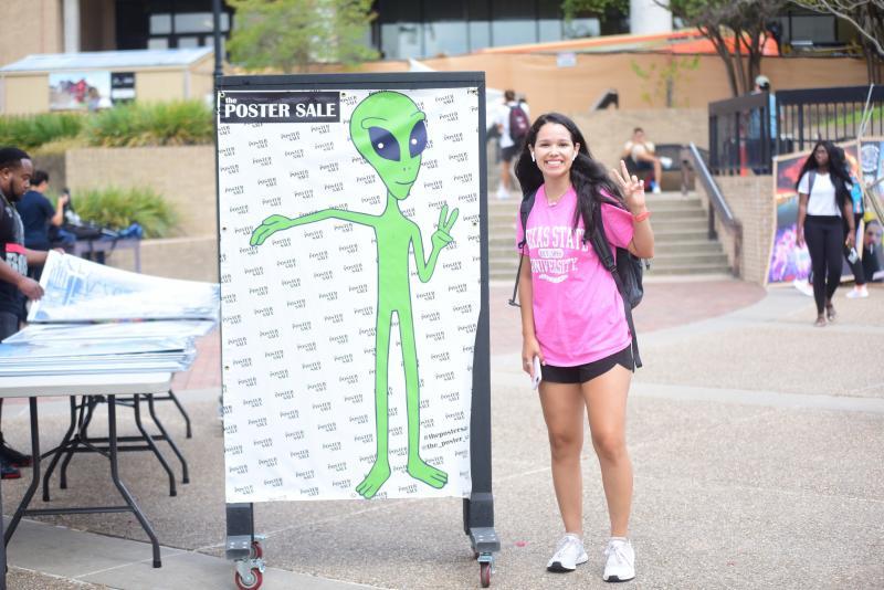 For four years running, you can find icon Joseph Losoya (Bubble Believer) on campus at Texas State University in front of Alkek Library bringing smiles to a lot of students. Sarah Cox walks away with a big smile after she picked up a free folder Losoya gave away. “Bubbles are fun for everyone,” she said. Daily Record photos by Gerald Castillo