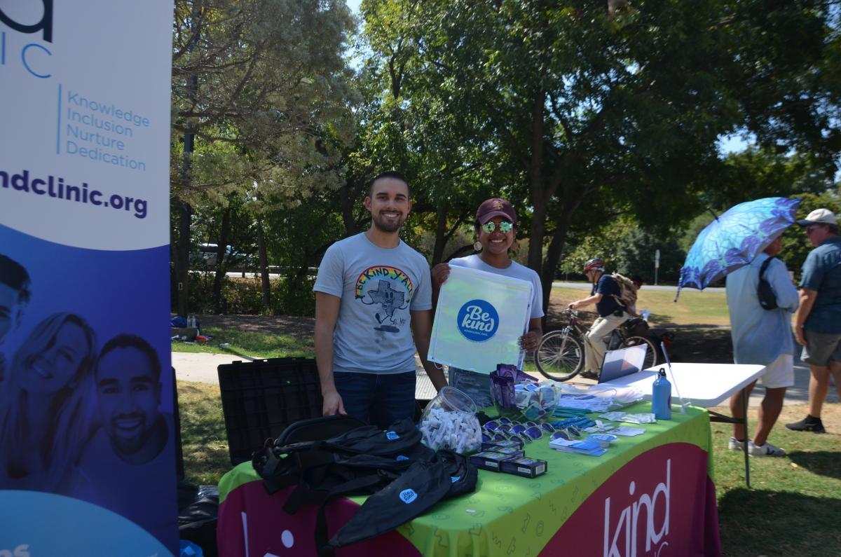 Leonides Gomez Jr. and Ally Guzman of Texas Health Action’s Kind Clinic stand at their booth. The Kind Clinic provides sexual health services including PrEP and PEP access for HIV prevention, STI testing and treatment. Daily Record photos by Colton Ashabranner, Toy Mendez & Rachel Willis