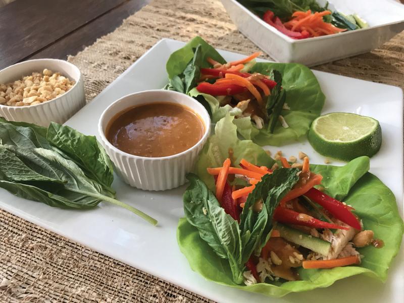 Thai Chicken Lettuce Wraps with Peanut Sauce