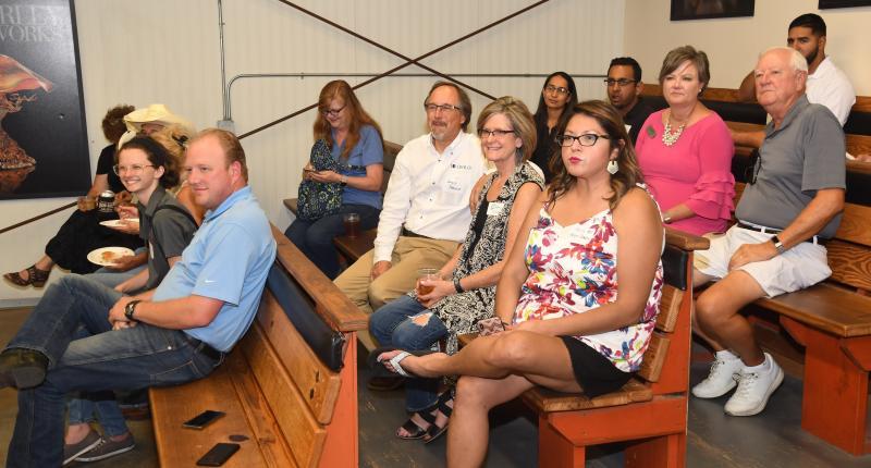 Business After Hours attendees watch glass being blown.